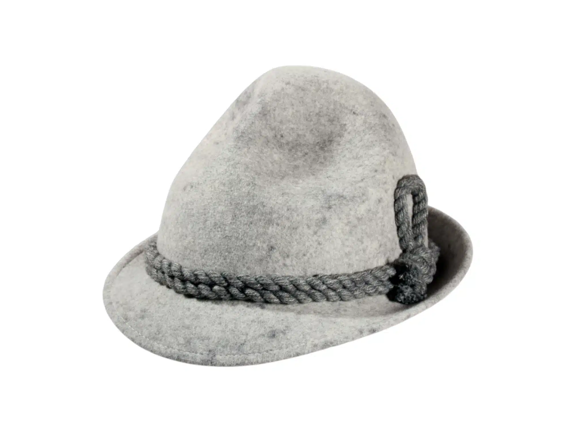 Der Jäger-Tirolerhut aus 100% Wollfilz besticht durch seine klassische Form und seine robuste Verarbeitung. Mit einer Kopfhöhe von 13,5 cm und einer Randbreite von 4,5 cm ist dieser Hut der ideale Begleiter für Liebhaber von traditioneller Trachtenmode. Die zweifach gedrehte Kordel als Hutband verleiht dem Modell einen authentischen und urigen Look, perfekt für Outdoor-Aktivitäten und traditionelle Anlässe.