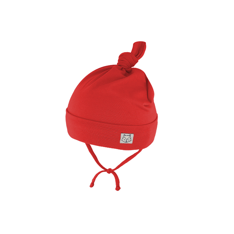 Kinder Stoffmütze Jersey uni mit Band und Knoten GOTS