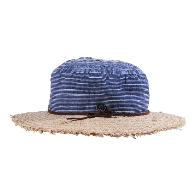 Dieser smarte Sommerhut verbindet das Beste aus Funktionalität und modischem Anspruch: Der Kofferhut Cloche schmalrandig lässt sich flach zusammenlegen und mühelos im Gepäck verstauen ideal für unterwegs, ohne Kompromisse beim Stil einzugehen. Mit seiner harmonischen Kombination aus naturfarbener Raffia-Krempe und marineblauem Stoffkopf mit feinen Streifen avanciert er zum charmanten Blickfang.