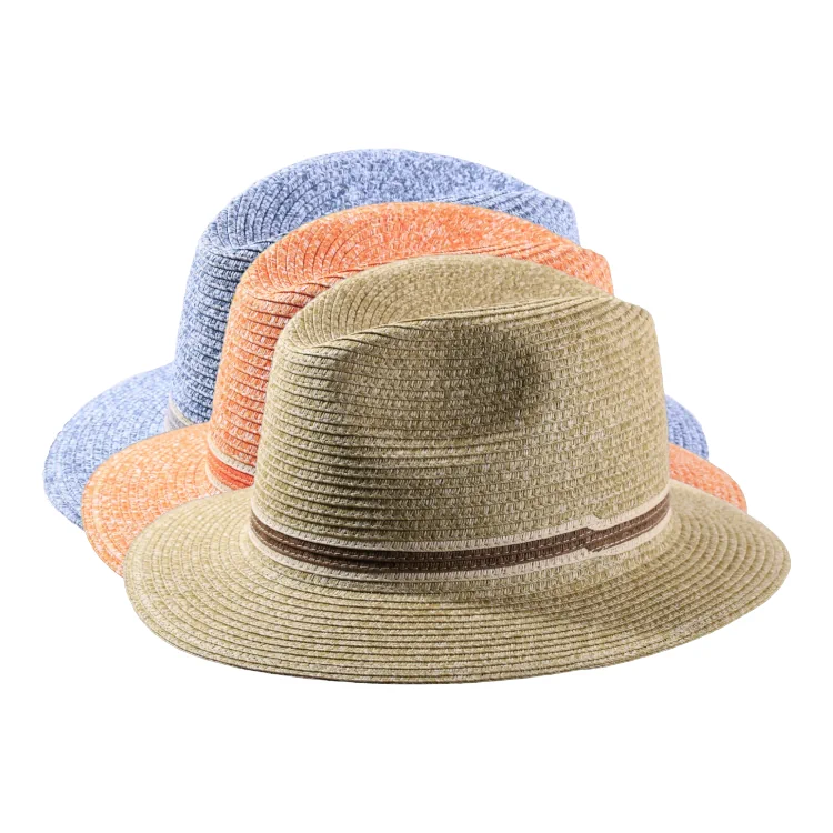 Dieser Fedora-Hut ist die perfekte Kombination aus klassischer Form und trendigem Farbspiel. Die elegante Tropfenform der Krone und die leicht geschwungene Krempe verleihen dem Hut seine charakteristische Leichtigkeit. Das farblich abgestimmte Band ist direkt in das Flechtwerk eingearbeitet ein stilistisches Detail, das den Hut besonders edel wirken lässt. Das Modell ist in den sommerlich-frischen Farben Senf-Melange, Orange-Melange und Jeans-Melange erhältlich und bringt mit seiner Struktur Lebendigkeit in jedes Outfit.