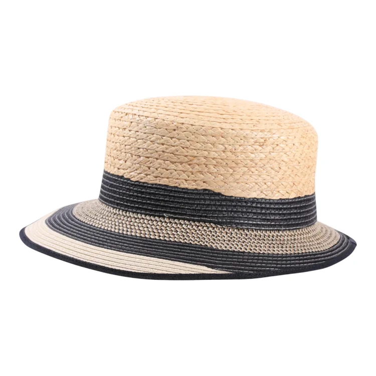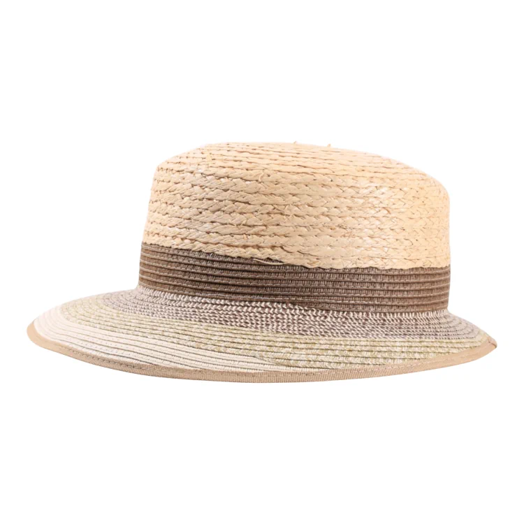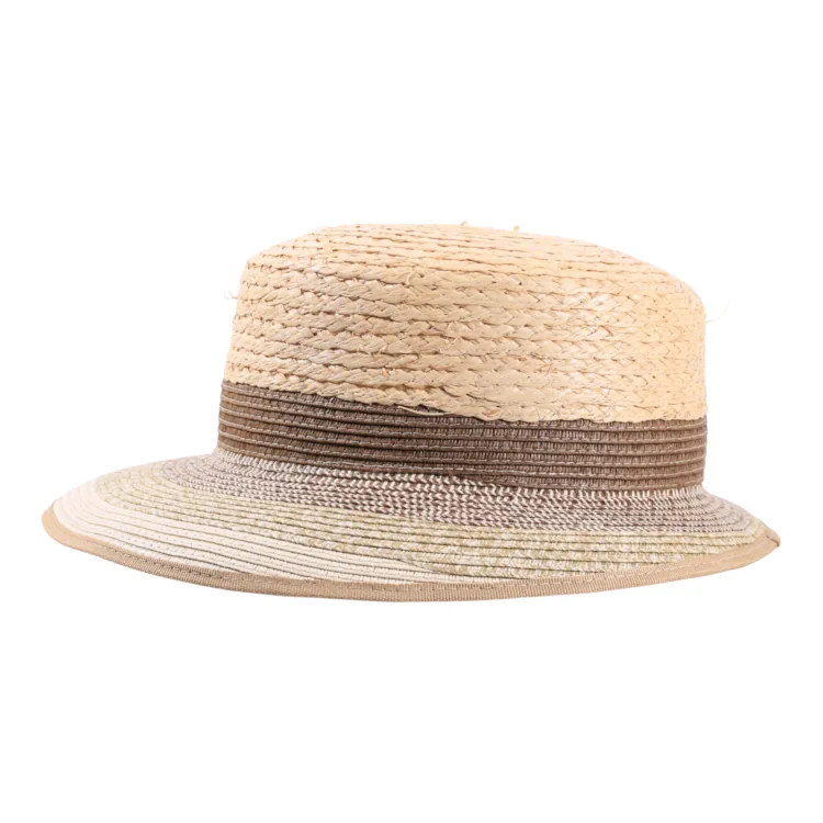 Die flache Krone und die leicht geschwungene Krempe verleihen dem Hut eine moderne, klare Linie. Die raffinierte Farbabstufung von natürlich geflochtenem Hutkörper bis zu den fein strukturierten Streifen betont das handwerkliche Können und macht jeden Hut einzigartig. Die eingefasste Krempe verleiht Formstabilität und rundet das Design hochwertig ab.