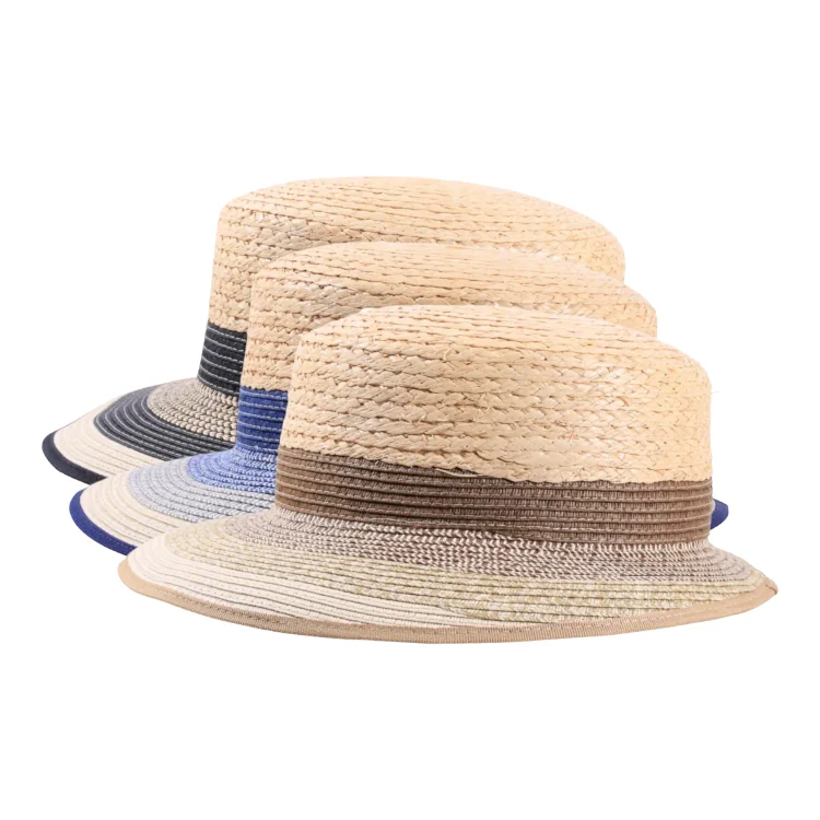 Der natürliche Charakter der Raffia-Fasern kombiniert mit strukturierter Zellulose sorgt für ein leichtes, atmungsaktives Tragegefühl ideal für heiße Sommertage. Der Hut ist in drei Farbvarianten erhältlich, die mit ihrem Streifenverlauf vom Hutkörper bis zur Krempe in fein abgestimmten Nuancen überzeugen: Schwarz für urbane Coolness, Mittelbeige für dezente Natürlichkeit und Jeansblau für den sommerlichen Casual-Look.