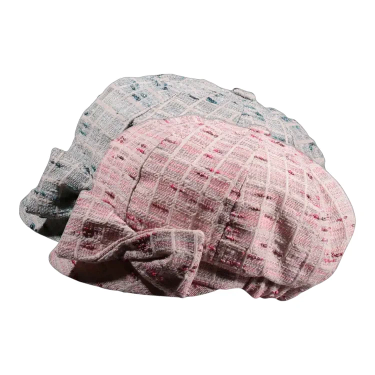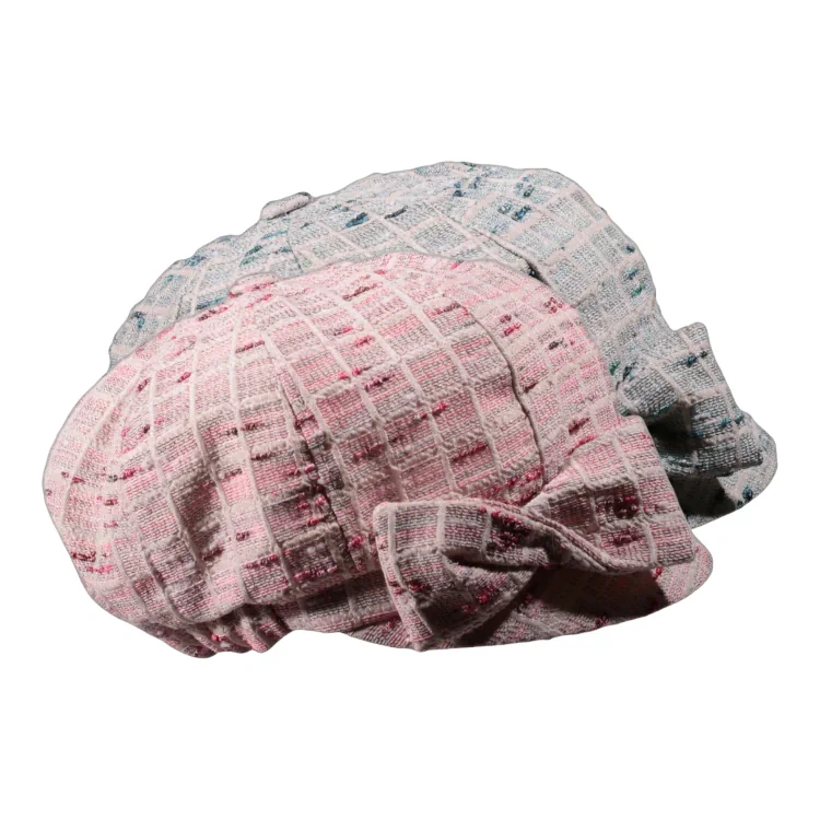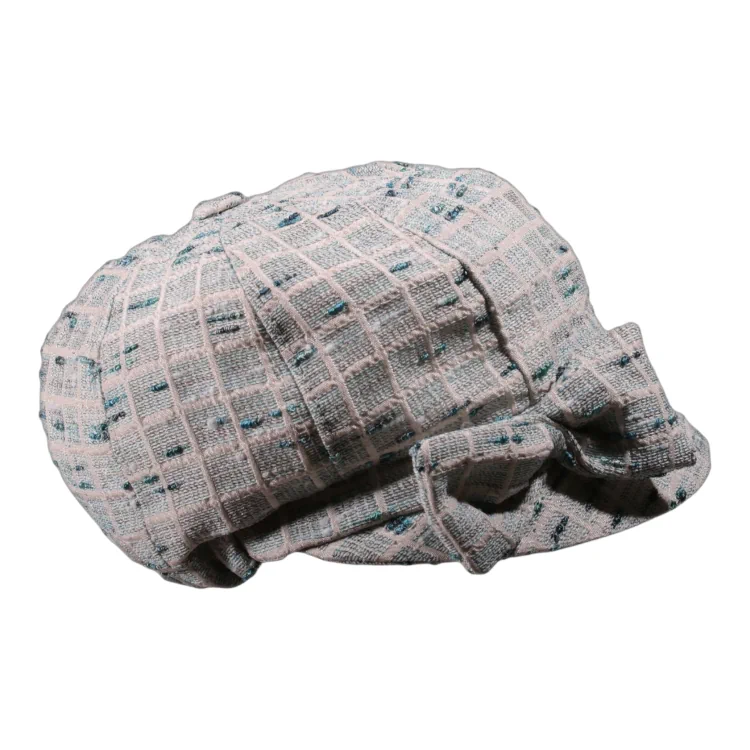 Die Ballonmütze begeistert mit einer femininen Silhouette und einer weich fallenden Form, die durch die raffinierte Stoffverarbeitung unterstrichen wird. Das strukturierte Karomuster wirkt dreidimensional, lebendig und modern. Die liebevoll angesetzte Schleife rundet das Design harmonisch ab und verleiht der Mütze eine verspielte Note.