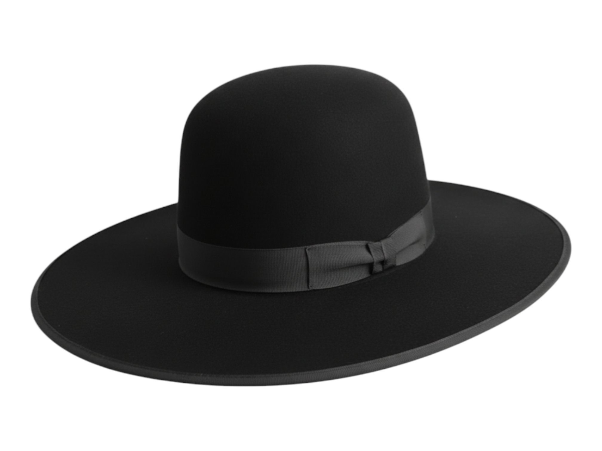 Der Open Crown – Old West Filzhut ist ein Meisterwerk der Ausdrucksstärke. Mit seiner imposanten Kopfhöhe von 13.5 cm und der offenen, ungebrochenen Krone verkörpert dieser Hut Authentizität und Freiheit wie kaum ein anderes Modell. Die extrem breite Krempe (10.5 cm) sowie das edle Rebsband verleihen ihm eine kraftvolle Präsenz – perfekt für Modeindividualisten, Kulturliebhaber und Western-Enthusiasten.