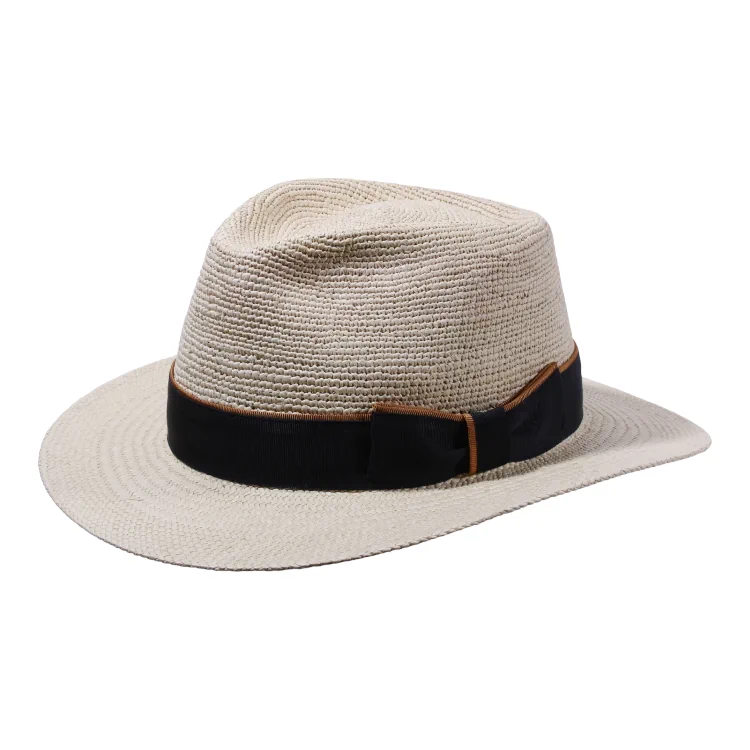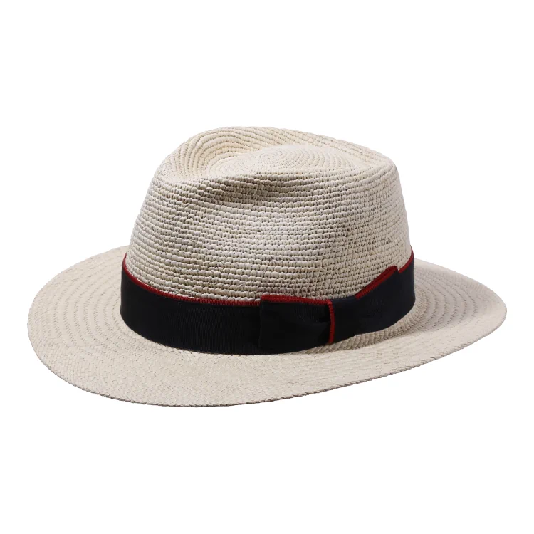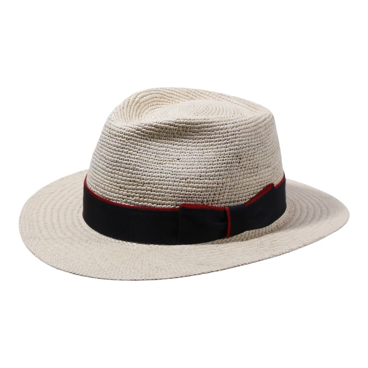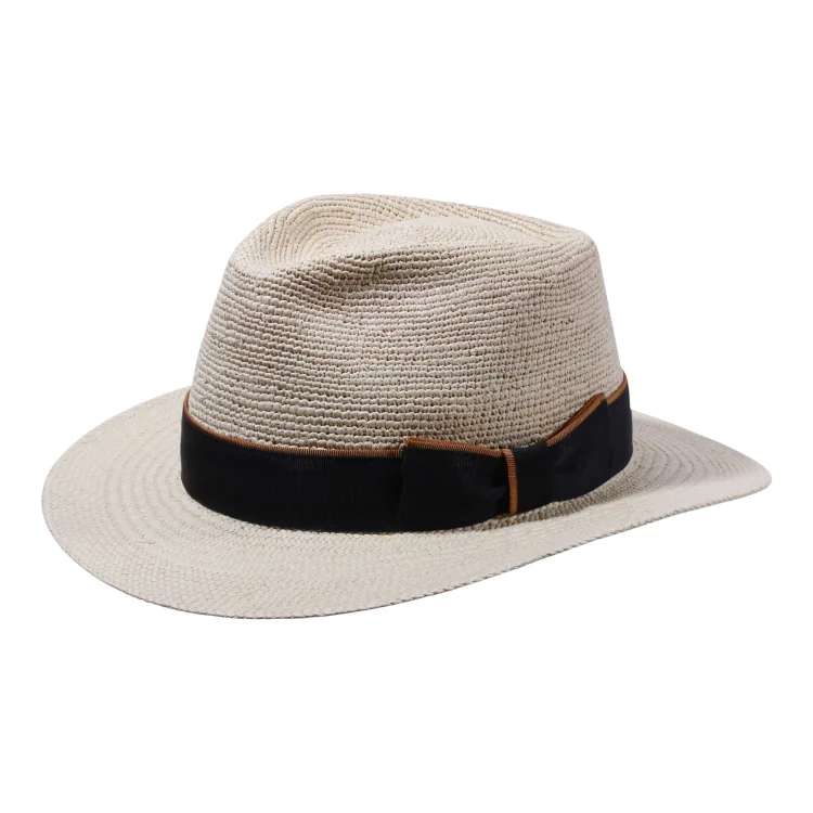 Dieser Fedora-Hut überzeugt durch seine klassische, leicht spitz zulaufende Krone und die sanft geschwungene Krempe. Das verwendete Toquilla-Stroh sorgt nicht nur für hohe Flexibilität und Leichtigkeit, sondern verleiht dem Hut auch seine charakteristische Textur. Besonders hervorzuheben: das Hutband aus edlem Rebs mit breiter Masche, das je nach Variante mit einem schwarzen, marineblauen oder braunen Akzentband abschliesst. Ein Must-have für stilbewusste Sommer-Outfits.