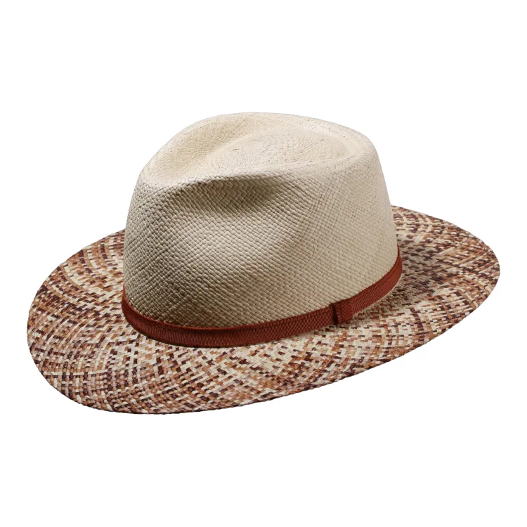 Die Krempe besteht aus mehrfarbig geflochtenem Panama-Stroh ein besonderes Detail mit modischer Note.