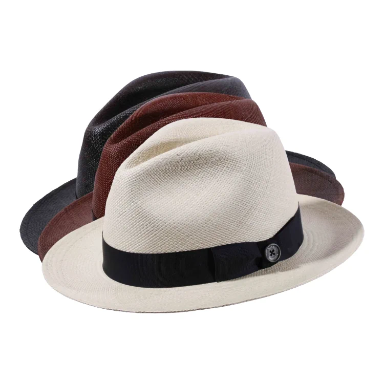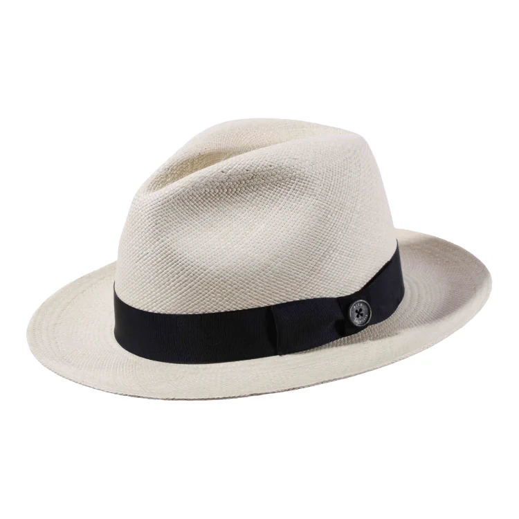 Das feine Flechtwerk aus echtem Toquilla-Stroh sorgt für eine glatte, geschmeidige Oberfläche, die gleichzeitig robust und angenehm luftig bleibt. Der Hut wird ergänzt durch ein dezentes Rebsband mit ikonischem Risa-Qualitätsknopf auf der Masche ein Symbol für Schweizer Handwerkskunst seit 1919.