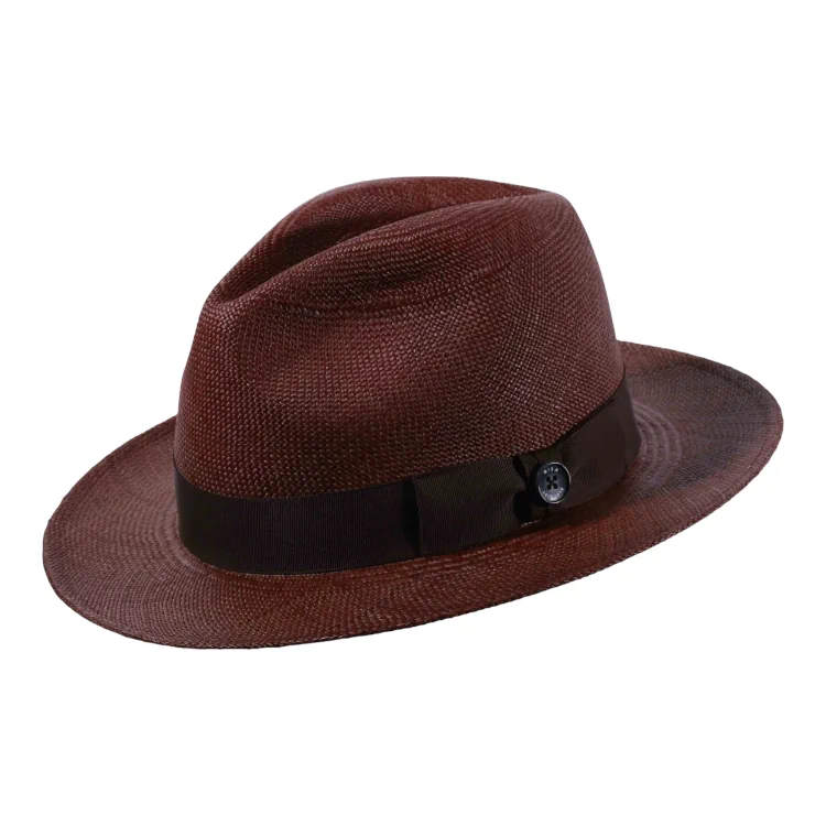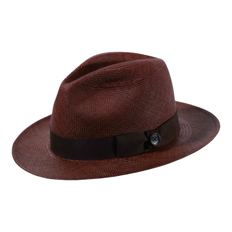 Die charakteristische Brisa-Flechtung verleiht dem Hut eine geschlossene, edle Textur, die besonders leicht auf dem Kopf liegt. Die dezente Garnitur und das fließende Formenspiel machen diesen Fedora zu einem modernen Klassiker für jeden Anlass.