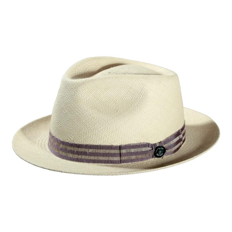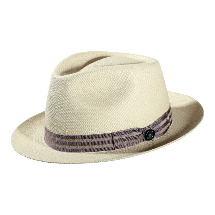 Gefertigt aus 100% echtem Panama, überzeugt dieser Player-Hut durch seine klassische, leicht nach oben gebogene Krempe und eine markant eingedrückte Krone. Die gestreifte Leinen-Garnitur in Navy oder Lila bringt sommerliche Leichtigkeit ins Design und verleiht dem Hut einen modernen Twist. Ob für die Stadt, den Urlaub oder den Apéro im Garten dieser Playerhut strahlt Klasse aus und bietet gleichzeitig zuverlässigen Schutz vor der Sonne.