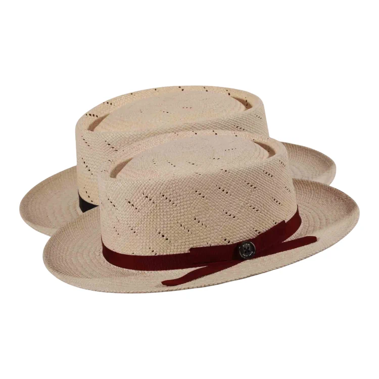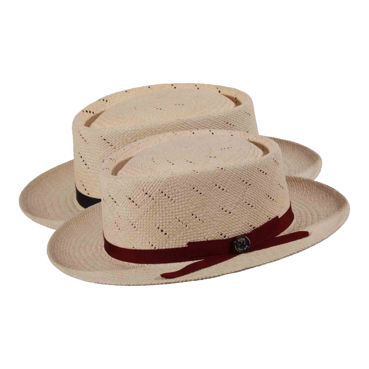 Panamahut Boater mit Lochmuster und farbigem Rebsband|Panamahut Boater mit Lochmuster und farbigem Rebsband|Panamahut Boater mit Lochmuster und farbigem Rebsband|||