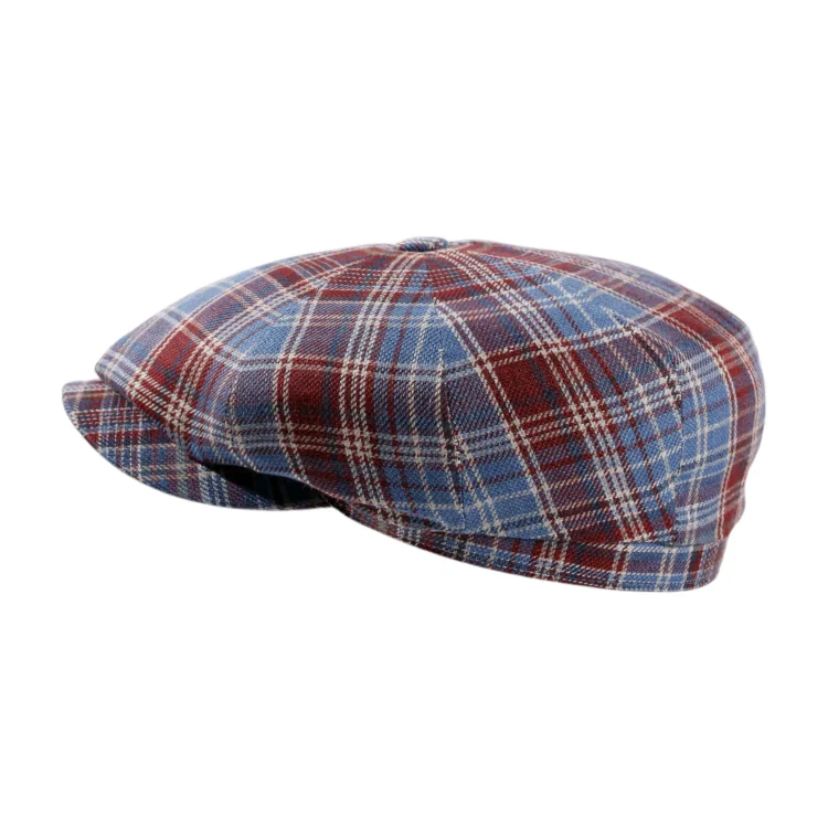 Mit ihrem charakteristischen Retro-Look setzt die schmale Paperboy Leinenmütze stilvolle Akzente. Das edle Karomuster, bestehend aus harmonisch ineinander verwobenen Ober- und Unterkaros in Bordeaux- und Jeansblau, verleiht der Mütze zeitlose Eleganz mit einer modernen Note. Der kurze, dezente Schirm und die stilvolle Formgebung machen dieses Accessoire zu einem Favoriten anspruchsvoller Modekenner.