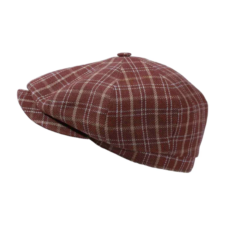 Die klassisch achtteilige Newsboy-Konstruktion mit Knopf in der Mitte erhält durch den integrierten Steg eine moderne Kontur. Das großzügige Volumen macht die Mütze zum Blickfang – ohne zu überladen. Das Karomuster bringt Tiefe und Struktur ins Design.