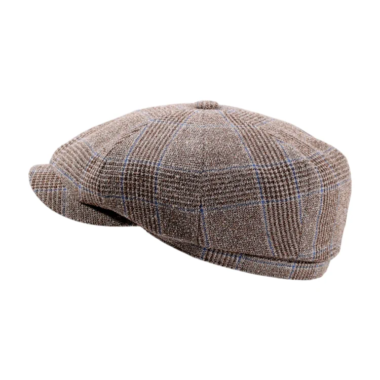 Das feine Glencheck-Muster mit dezenten, helleren Streifen verleiht der Mütze einen edlen Touch. Die hochwertige Materialmischung wird in Italien mit großer Sorgfalt verarbeitet, was sich in der angenehmen Haptik und der langlebigen Qualität widerspiegelt.