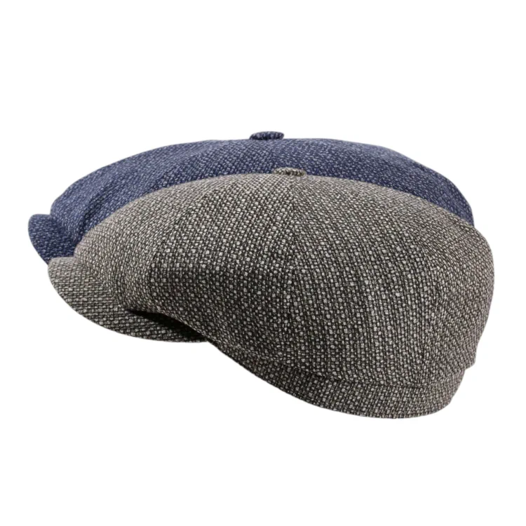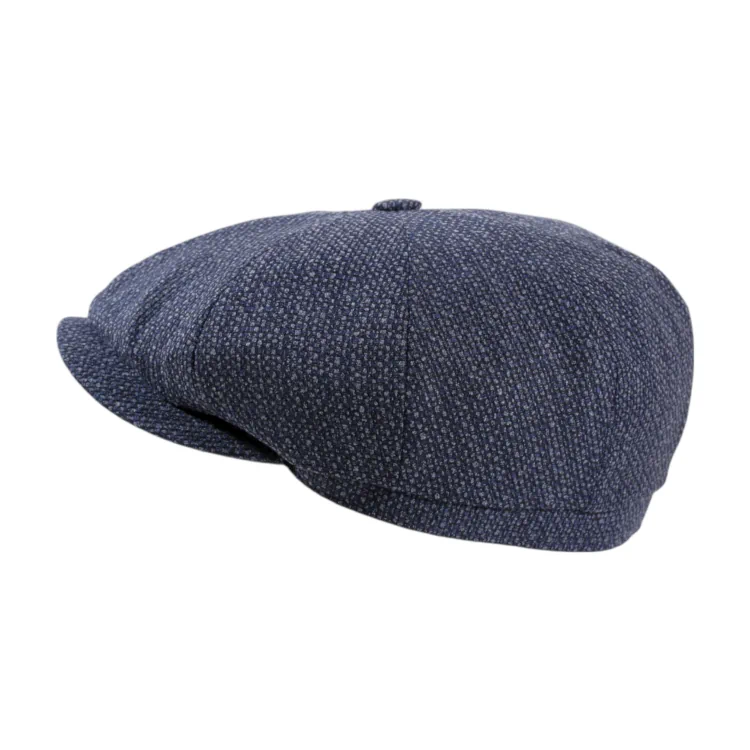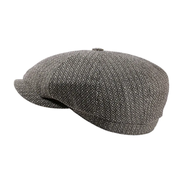 Die Mütze besticht durch ihre schmale, elegante Silhouette und den sorgfältig verarbeiteten kurzen Schirm. Eine subtile Oberflächenstruktur verleiht der Kopfbedeckung ein stilvolles Finish, während präzise Nähte und der dekorative Stoffknopf die hohe handwerkliche Qualität betonen.