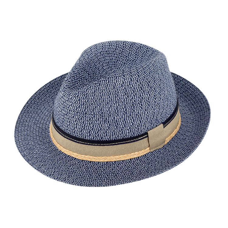 Papierhut Fedora melange mit dreifarbigem Ripsband