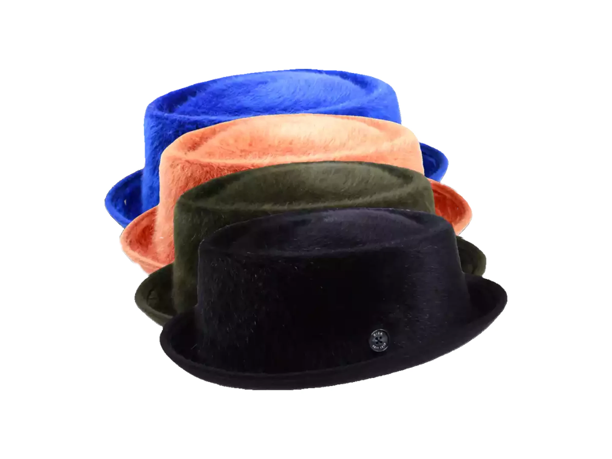 Die Farboptionen – Schwarz, Olive, Royalblau und Apricot – bieten eine vielfältige Auswahl, sodass Sie den Hut perfekt auf Ihren Stil abstimmen können. Die schlichte Garnitur, verziert mit dem ikonischen „1919 Knopf“ als Qualitätssiegel, sorgt für einen Hauch von Raffinesse und unterstreicht die handgefertigte Präzision, die in jedem Detail steckt.