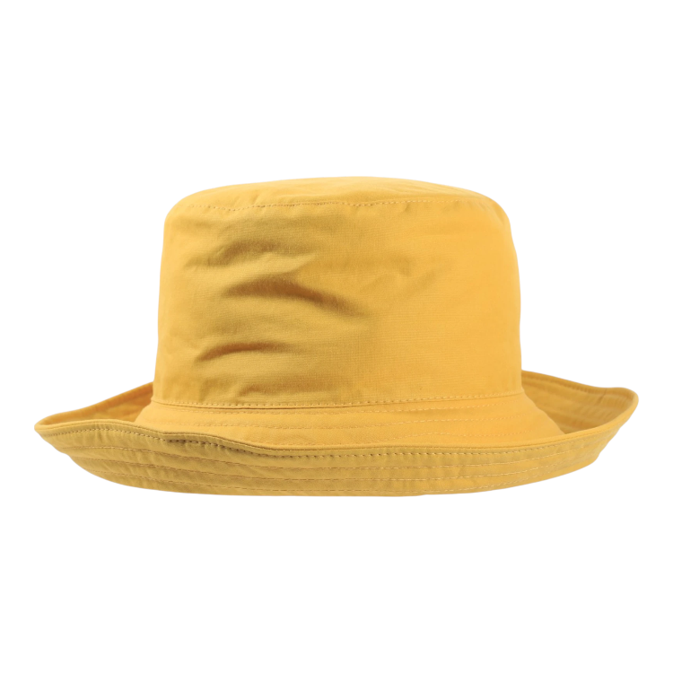 Erhältlich in den stilvollen Farboptionen Gelb, Hellbeige, Marineblau und Anthrazit, passt sich der Hut jedem Outfit und jeder Stimmung an. Die breite Krempe bietet zusätzlichen Schutz vor Regen, während das sauber eingenähte Textilband und der Innenhut für einen perfekten Sitz und maximalen Komfort sorgen.