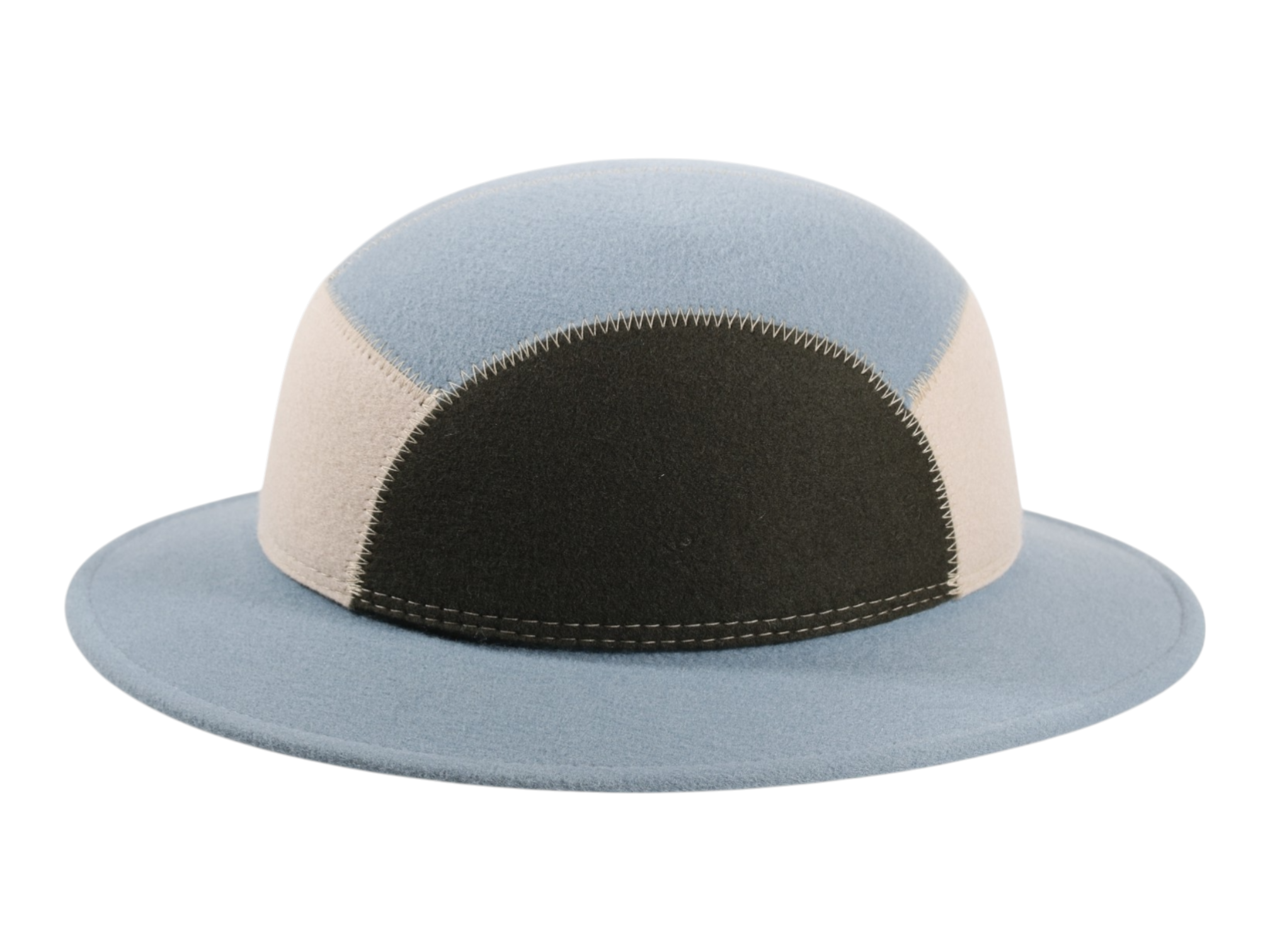 Der Safarihut „young and wolly“ ist ein Statement moderner Hutmode und zugleich ein Ausdruck traditioneller Handwerkskunst. Mit seiner markanten 7-Panel-Konstruktion aus farblich kontrastierenden Segmenten in Himmelblau, Beige und Schlamm verleiht er jedem Outfit einen unverwechselbaren, urbanen Look.