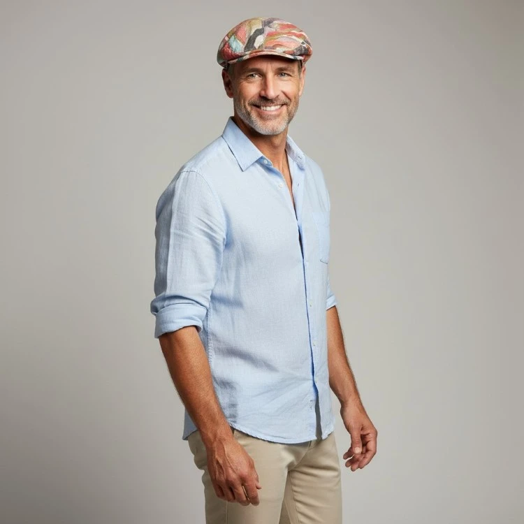 Das atmungsaktive Leinen-Viskose-Material macht diese Schiebermütze zum perfekten Begleiter für warme Temperaturen. Das kunstvolle Muster in Multicolor sorgt für einen einzigartigen Look, der Individualität und modisches Gespür unterstreicht. Der klassische Schnitt mit leicht verlängertem Schild sorgt für eine stilvolle Passform, die zu zahlreichen Sommer-Outfits passt.