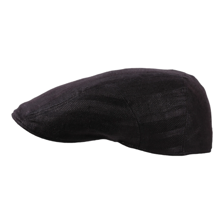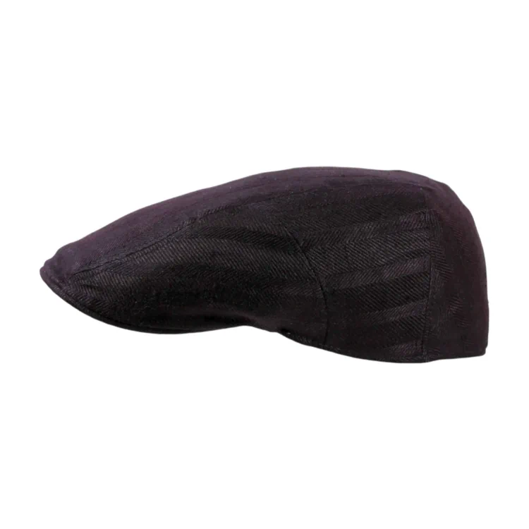 Die flache, körpernahe Form der Mütze betont das Gesicht und lässt sich hervorragend zu modernen wie klassischen Outfits kombinieren. Das dezente Herringbone-Muster verleiht dem schwarzen Leinenstoff Tiefe und Struktur. In Handarbeit gefertigt, punktet dieses Modell mit hochwertiger Verarbeitung und einem zeitlos anspruchsvollen Look.