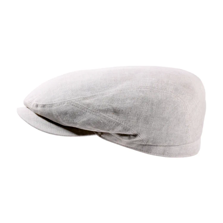 Diese Schiebermütze überzeugt durch ihr minimalistisches Design und ihre exzellente Verarbeitung. Die flache, abgerundete Form liegt angenehm am Kopf an und sorgt für einen stilvollen, unaufdringlichen Look. Das feine Leinenmaterial verleiht der Mütze eine dezente Struktur und eine luxuriöse Haptik.