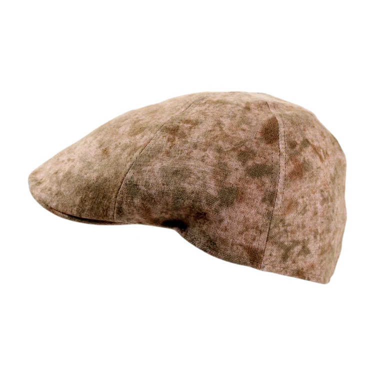 Diese außergewöhnliche Schiebermütze aus 100% Leinen besticht durch ihre organische Farbgebung, die durch eine spezielle Färbetechnik mit Holzkohle, Kaffee und Flechten entsteht. Jedes Modell ist ein Unikat mit einem kreativen, lebhaften Muster in warmen Khaki-, Grün- und Rosatönen. Die perfekte Wahl für Individualisten, die Wert auf Nachhaltigkeit und Ästhetik legen.