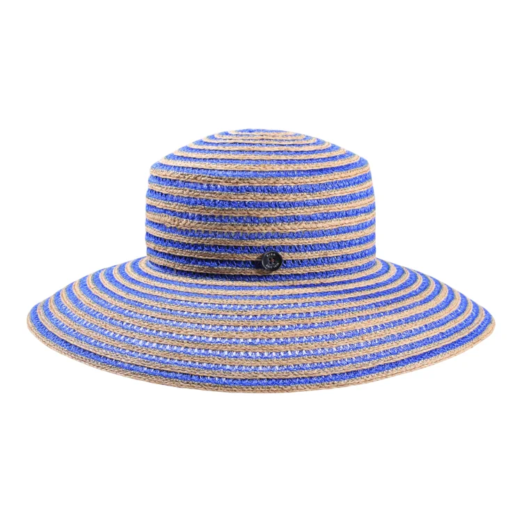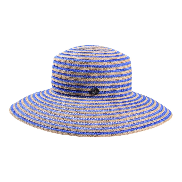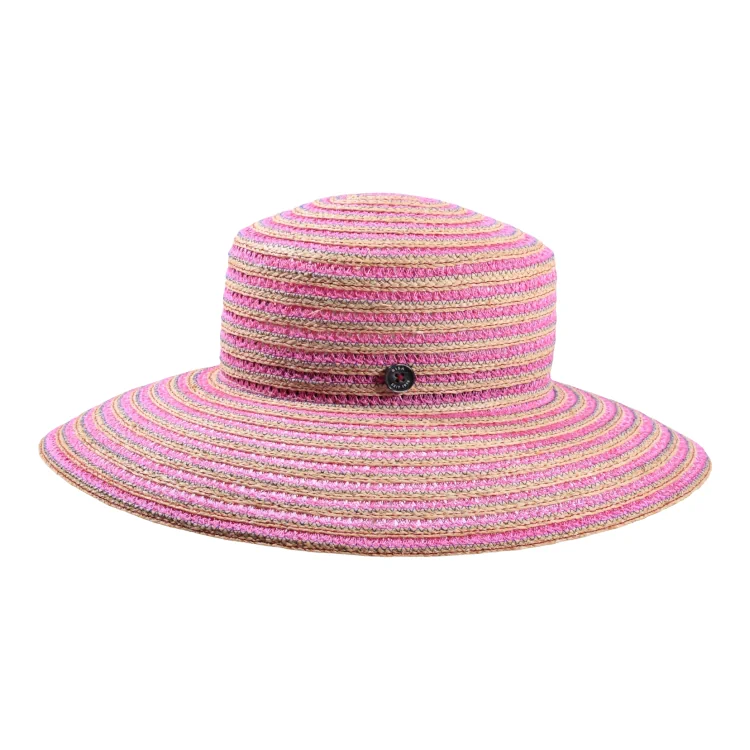 Der Hut besticht durch seine feine Spiralstruktur, die durch den Wechsel aus farbigen und natürlichen Fasern einen dynamischen Look erzeugt. Der breite Schirm ist sanft geschwungen und gibt dem Modell eine klassisch-feminine Cloche-Silhouette mit sommerlichem Esprit. Ein authentisches Modeaccessoire, das Handwerkskunst auf höchstem Niveau widerspiegelt.