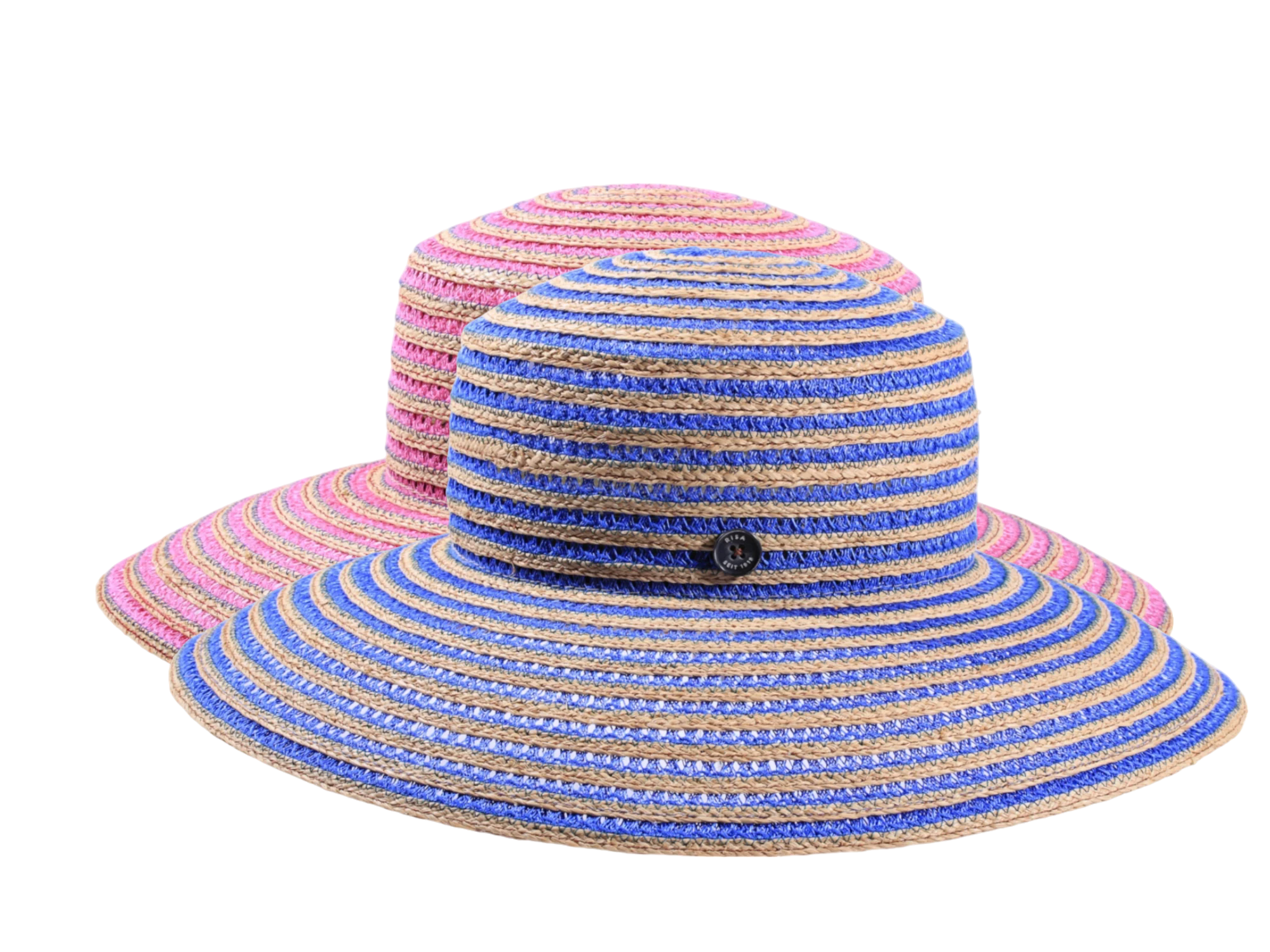 Mit seinem harmonischen Streifendesign in Risa-Pink oder Gucci-Blau und dem extravaganten Schwung der Cloche-Form wird dieser Sommerhut zum Highlight jeder Garderobe. Die Kombination aus Hanf und Raffia verleiht dem Modell eine griffige, natürliche Textur und einen angenehm leichten Sitz. Der hochwertige 1919-Knopf ist nicht nur ein dekoratives Element, sondern auch ein Statement für handwerkliche Qualität und Herkunft. Jeder Hut wird auf Bestellung im Herzen Europas bei der renommierten Schweizer Hutmanufaktur Risa gefertigt ein Unikat mit Persönlichkeit.