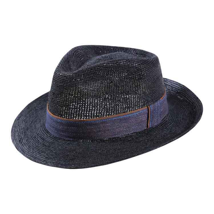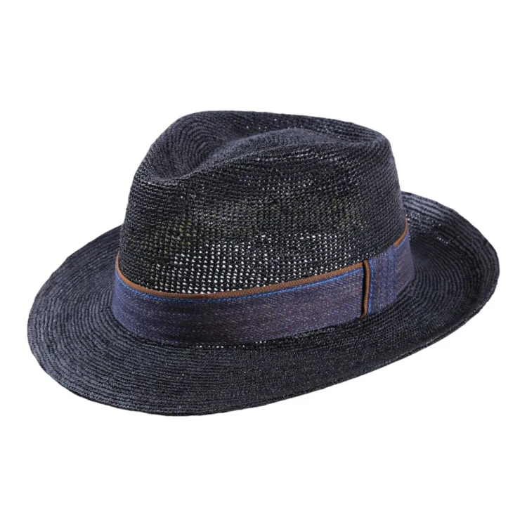 Dieser Sommerhut aus gehäkeltem Raffia präsentiert sich als wahrer Hingucker in den Trendfarben Schwarz und Petrol. Die fein strukturierte Häkeloptik verleiht dem Hut eine besondere, natürliche Ausstrahlung, während das elegante Jeans-Hutband mit schräger Traverse modische Akzente setzt. Ideal für warme Tage der Hut schützt zuverlässig vor intensiver Sonneneinstrahlung, ohne dabei an Atmungsaktivität und Komfort einzubüßen. Nachhaltig gefertigt in kleiner Stückzahl, unterstreicht dieser Fedora Raffia nicht nur Ihren modischen Anspruch, sondern auch Ihr Bewusstsein für Qualität und Handwerkskunst.