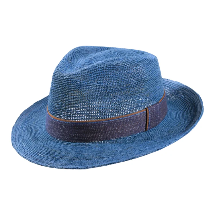 Die besondere Raffia-Häkelstruktur verleiht diesem Fedora-Sommerhut eine einzigartige Optik und ein angenehm luftiges Tragegefühl. Das fein verarbeitete Jeans-Leinenhutband bildet einen stilvollen Kontrast zur natürlichen Textur des Materials und setzt raffinierte Akzente. Die formschöne Fedora-Krone und die elegant geschwungene Krempe unterstreichen den hochwertigen Gesamteindruck.