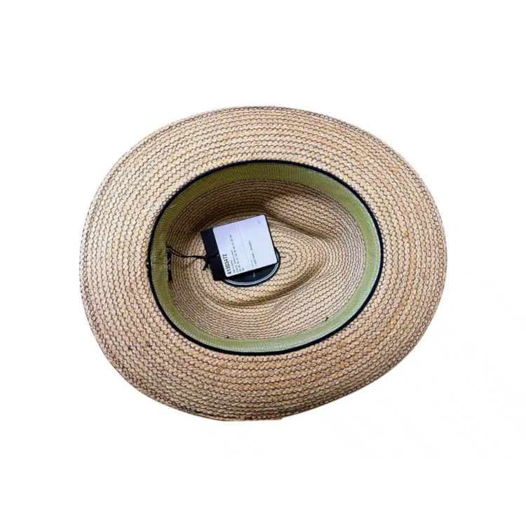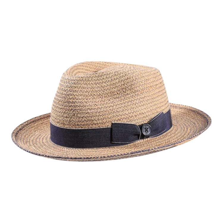Mit seiner markanten Krone, der moderat geschwungenen Krempe und dem typischen Fedora-Schwung bringt dieser Hut eine lässige Eleganz in jedes Sommeroutfit. Das natürliche Raffia-Material besticht durch seine luftige, leicht strukturierte Flechtung atmungsaktiv und UV-schützend zugleich. Die Garnitur aus tiefblauem Jeansstoff mit feiner Nahtführung und ikonischem Risa seit 1919-Knopf verleiht dem Modell seinen modernen Twist. Ein sauber eingenähtes Textilinnenband sorgt für angenehmen Tragekomfort bei jedem Wetter.