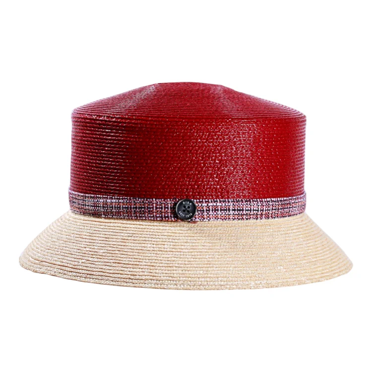 Die gerade, zylindrische Krone verleiht dem Bucket-Modell einen urban-modernen Charakter, während die breite, leicht abfallende Krempe einen Hauch Retro-Flair ins Spiel bringt. Ein feines, mehrfarbiges Textilband mit dem ikonischen Risa seit 1919-Knopf rundet das Design stilsicher ab.