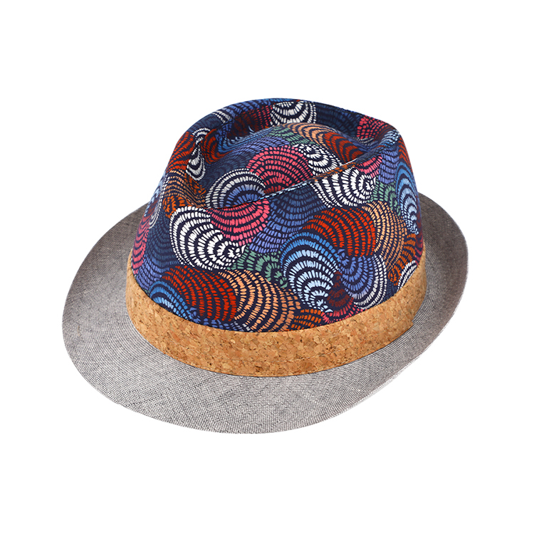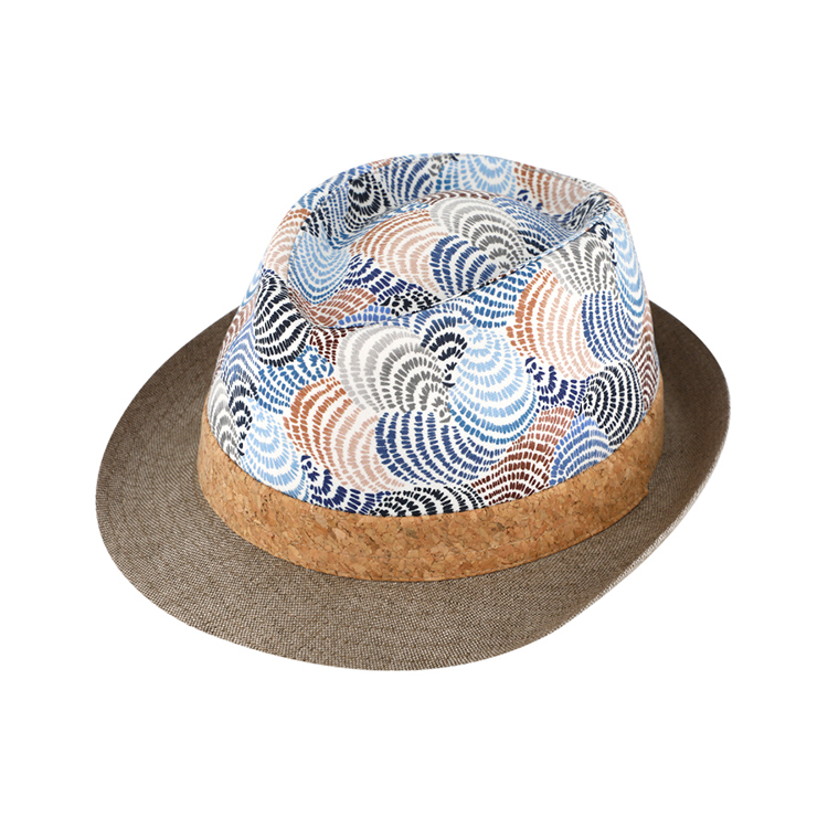 Stoffhut Trilby Leinen gemustert mit Kork-Band