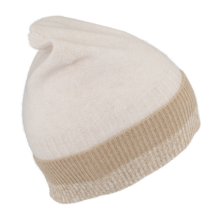 Strick Beanie Kaschmir Rippenstrick Feinstrick mit Umschlag