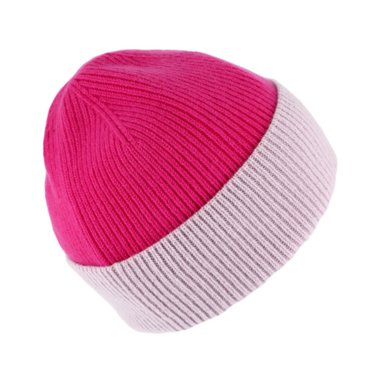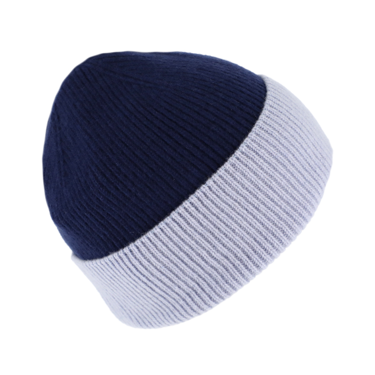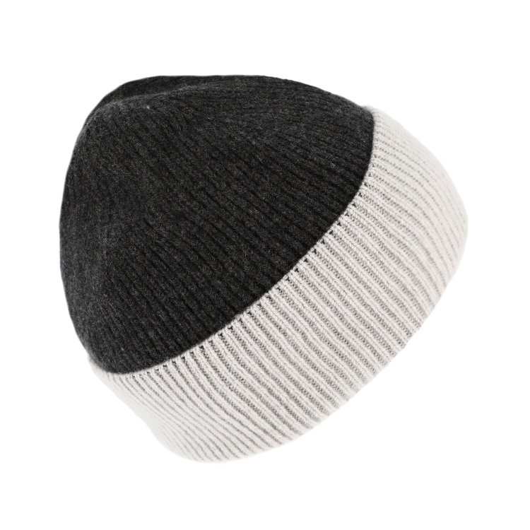 Strickmütze Kaschmir Merino zweifarbig mit Umschlag