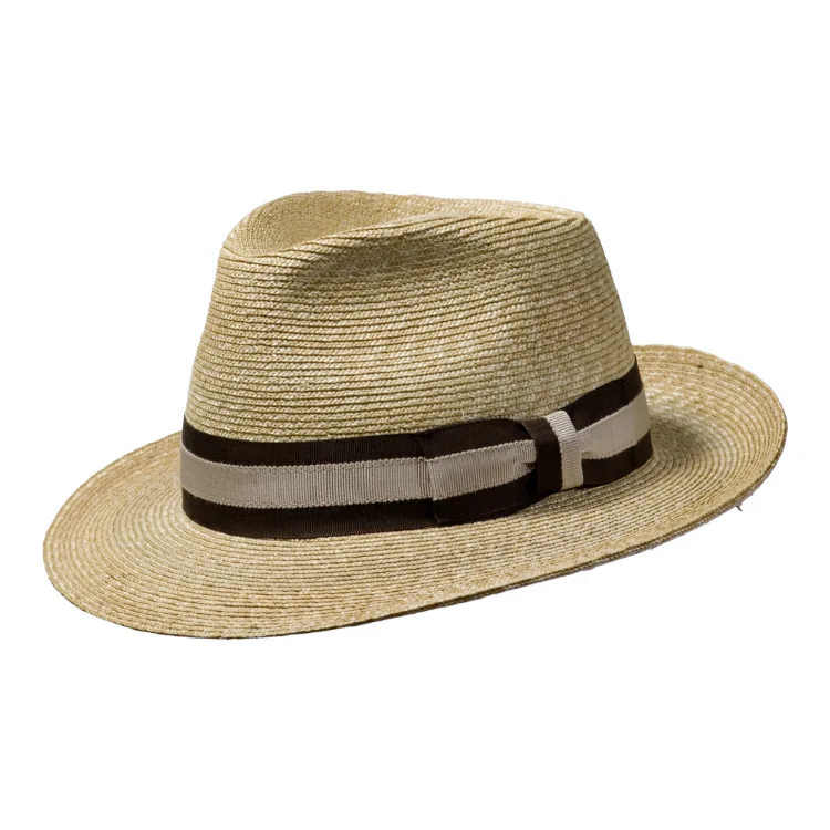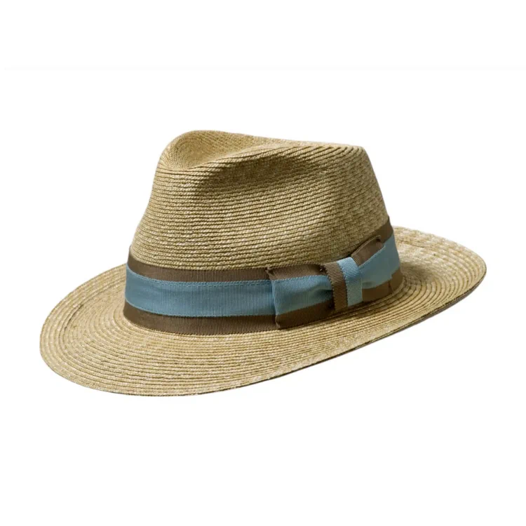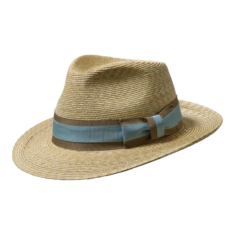 Gefertigt aus 100% naturbelassenem Stroh, bietet dieser Hut eine fein geflochtene, gleichmäßige Struktur, die für Leichtigkeit und exzellente Atmungsaktivität sorgt. Die klassische Bogart-Form mit hoher Krone (11,5 cm) und breiter Krempe (6,5 cm) verleiht jedem Outfit einen Hauch von Hollywood-Glamour und sorgt gleichzeitig für optimalen Sonnenschutz. Ob dezent mit einfarbigem braunen Hutband oder akzentuiert mit gestreiften Garnituren in Braun/Beige oder Türkis/Sand Sie wählen Ihr persönliches Statement.