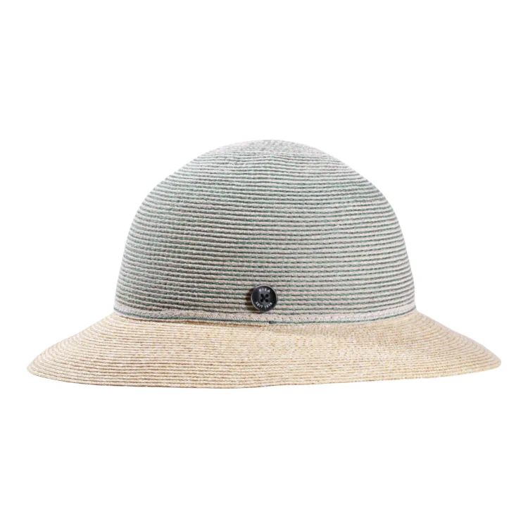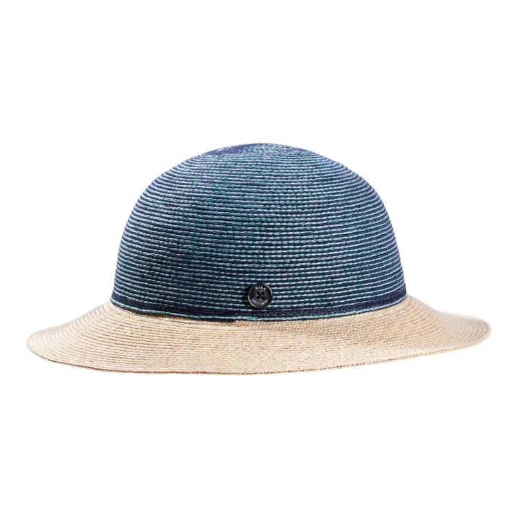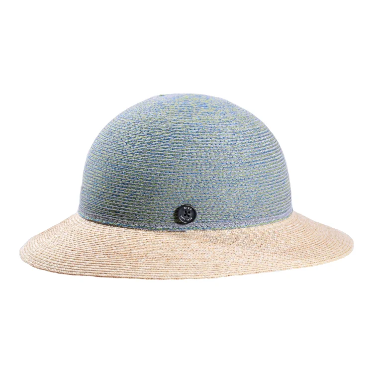Die moderne Cloche wirkt durch ihre Farbtrennung besonders raffiniert der matte Glanz des Hanfs kontrastiert mit der natürlichen Struktur des Strohs. Das Zusammenspiel erzeugt Tiefe und Leichtigkeit zugleich. Der runde Kopfverlauf betont die klassische Silhouette, während der schmale Rand für sommerliche Eleganz sorgt.
