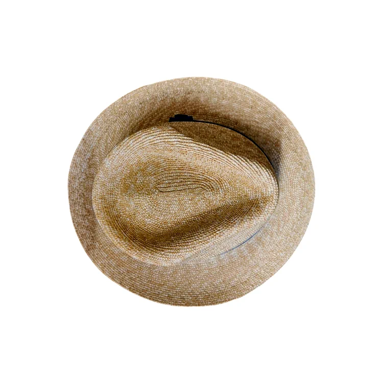 Feinstes, von Hand geflochtenes Weizenstroh verleiht diesem Modell seine lebendige Struktur. Die traditionelle Fedora-Krone wird elegant ergänzt durch die breite Krempe und das kontrastierende Hutband ein Zusammenspiel aus klassischen Linien und moderner Interpretation.