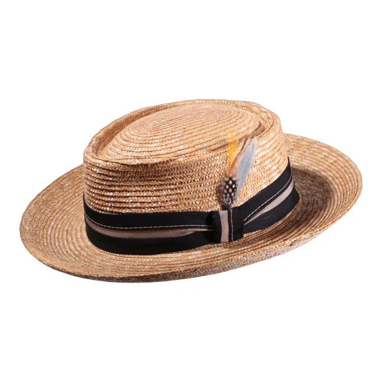 Dieser exklusive Fedora der Premium Freiamt Kollektion vereint traditionelle Handwerkskunst mit einem Hauch Extravaganz: Die Kombination aus 100% Weizenstroh, der großzügigen, eleganten Krempe und der flachen, sanft geschwungenen Fedora-Krone schafft ein unverkennbares Design, das gleichzeitig zeitlos und modern wirkt. Ein besonderes Highlight ist die dekorative Feder am Hutband, die diesem Modell einen individuellen, raffinierten Akzent verleiht.