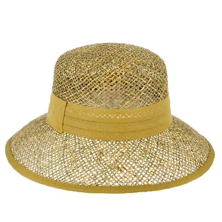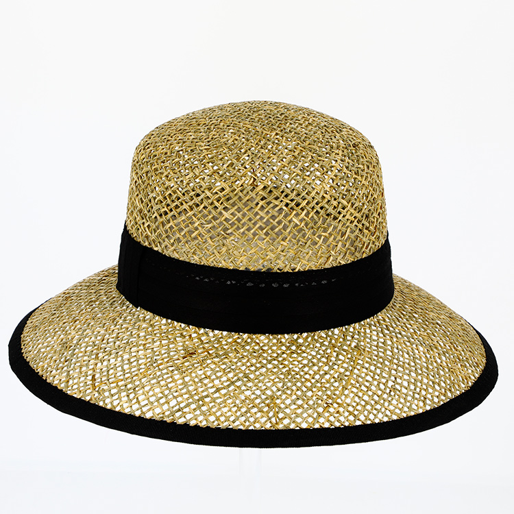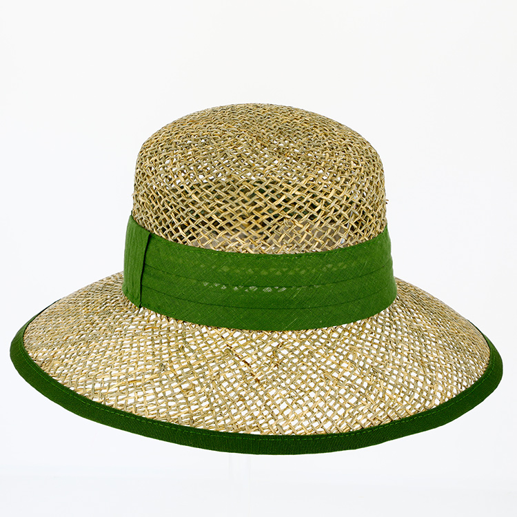 Strohhut Glocke Seegras Piping und Ripsband farbig