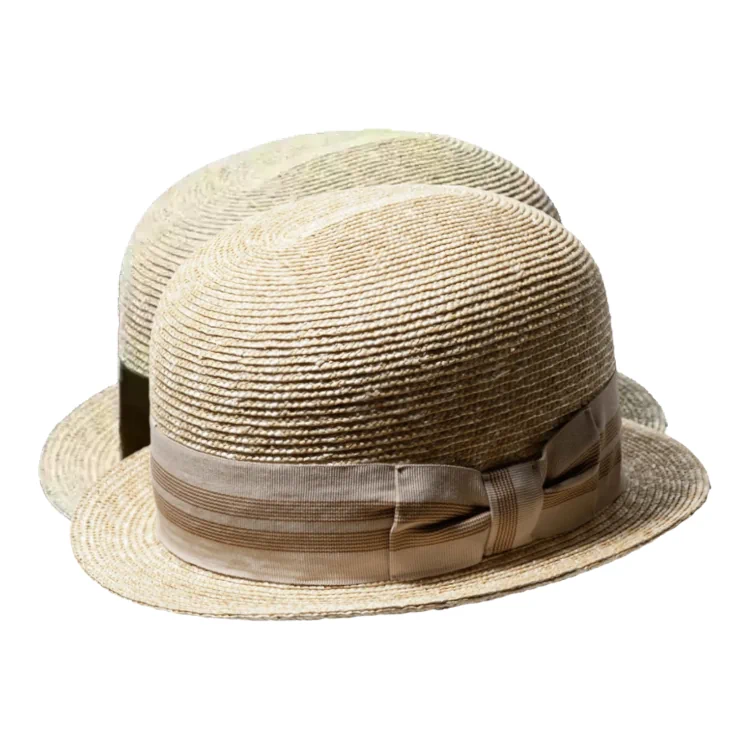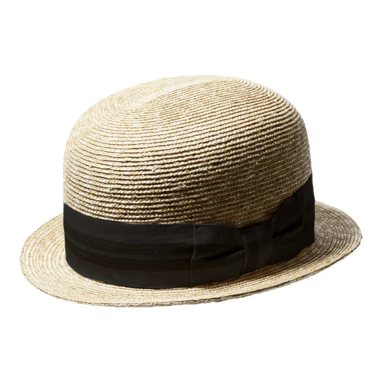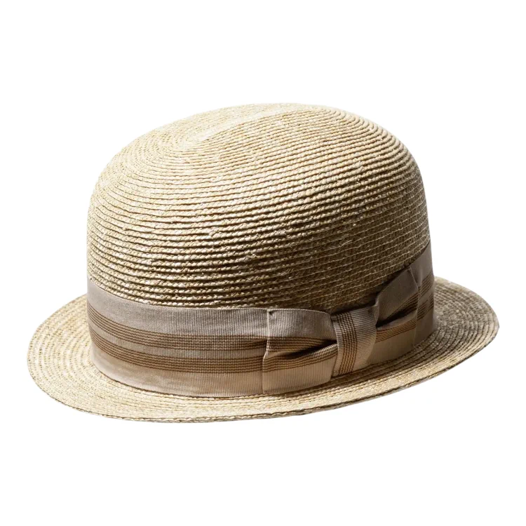 Bowler aus Weizenstroh in der Farbe Natur mit gestreifter Garnitur. der Bowler aus feinstem Weizenstroh aus der Freiamt Strohhut-Kollektion vereint zeitlose Eleganz mit Extravaganz. Handwerkskunst und Tradition machen diesen Hut zu einem Meisterwerk der Handwerkskunst. Entdecken Sie jetzt den perfekten Begleiter für jede Veranstaltung.