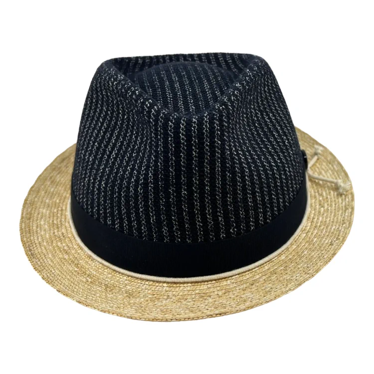 Die strukturierte Krone aus feiner Woll-Seidenmischung mit dezentem Streifenmuster steht in spannendem Kontrast zum natürlichen Strohrand. Das dezente Kordeldetail bringt eine sportlich-elegante Note ins Spiel typisch Risa: zeitlos, aber nie langweilig.