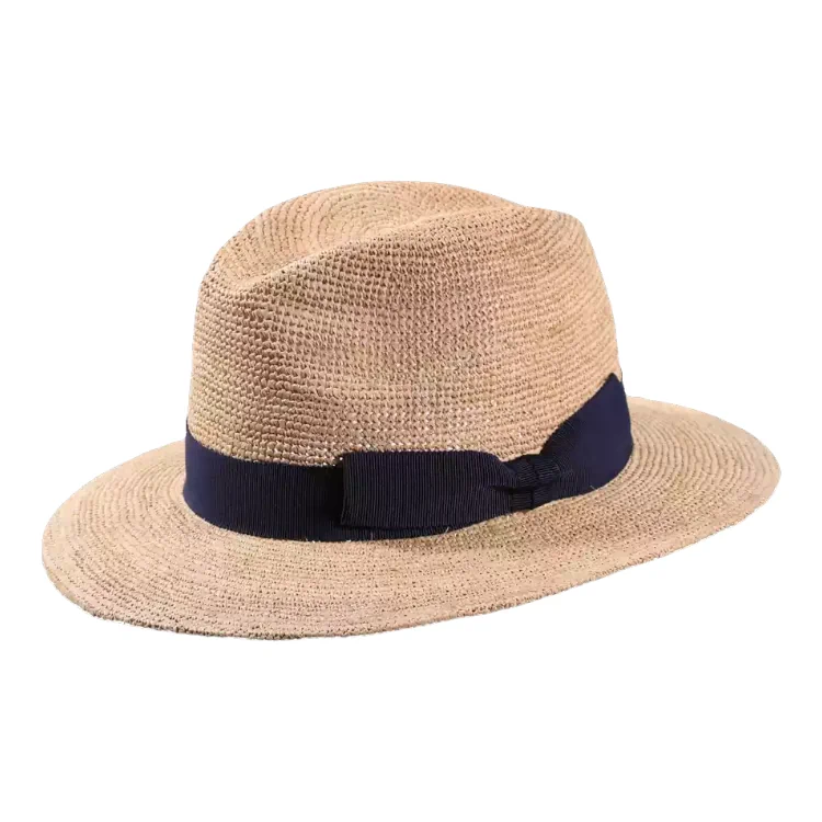 Dieser exklusive Fedora-Stil Strohhut wird aus 100% Raffia gehäkelt und präsentiert sich in einer natürlichen Farbgebung, die sowohl klassisch als auch modern wirkt. Durch das fein gehäkelte Material entsteht eine luftige Struktur, die gleichzeitig robust und formstabil ist.