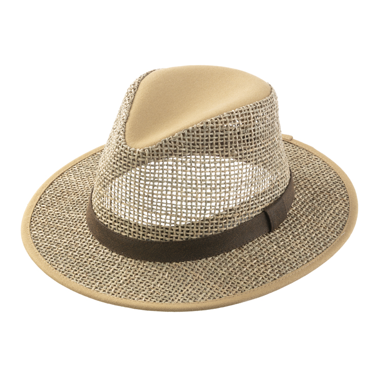 Strohhut Traveller Seegras mit Stoffpiping und Kunstlederband