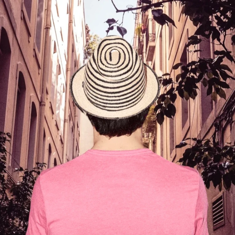 Die fein abgestimmten Farbringe aus geflochtenem Raffia werden nahtlos verarbeitet für ein harmonisches Design, das sowohl Natürlichkeit als auch moderne Coolness ausstrahlt. Die sorgfältig vernähte Krempe unterstreicht die Qualität, während das stabile Geflecht dennoch angenehm leicht bleibt.