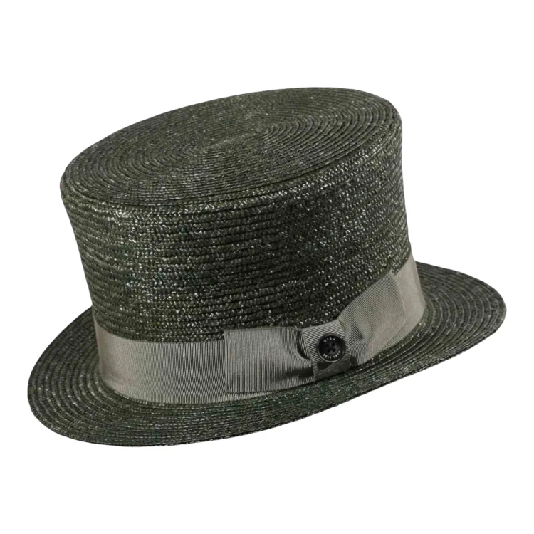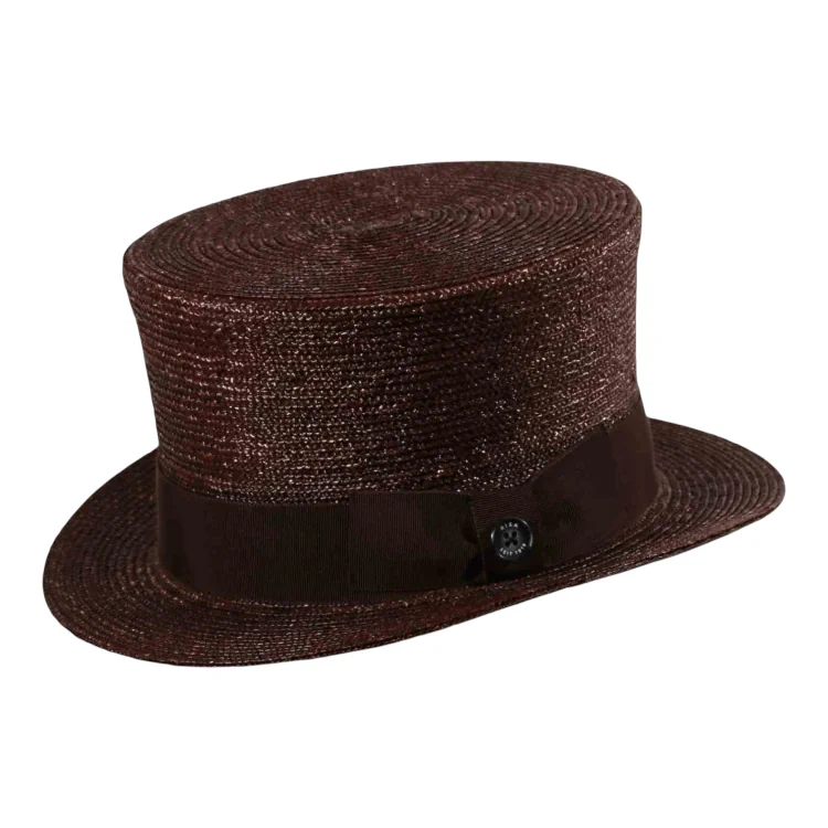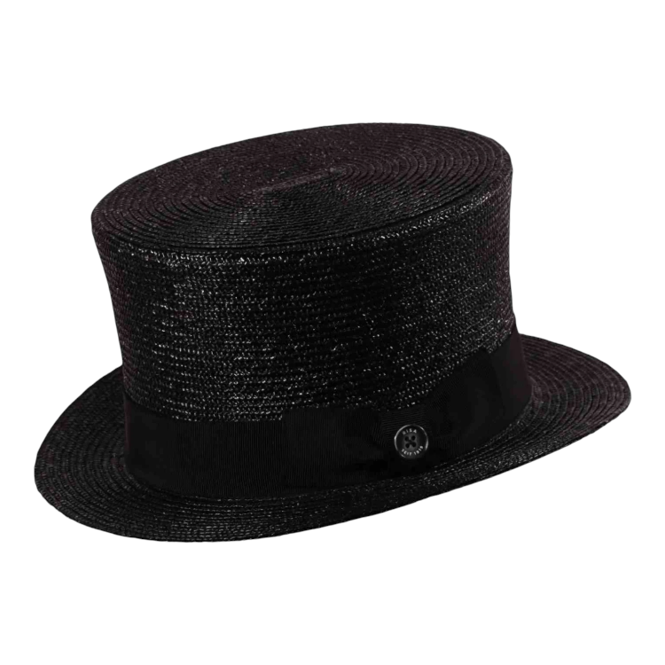 Die Farbgebung des Weizenstrohs erfolgt besonders schonend, sodass die natürliche Struktur und der leichte Glanz erhalten bleiben. Die flache, formstabile Krempe und die hohe Krone erzeugen eine architektonisch anmutende Silhouette klassisch und avantgardistisch zugleich. Jede Farbvariante hat ihren eigenen Charakter von dramatisch bis verspielt.