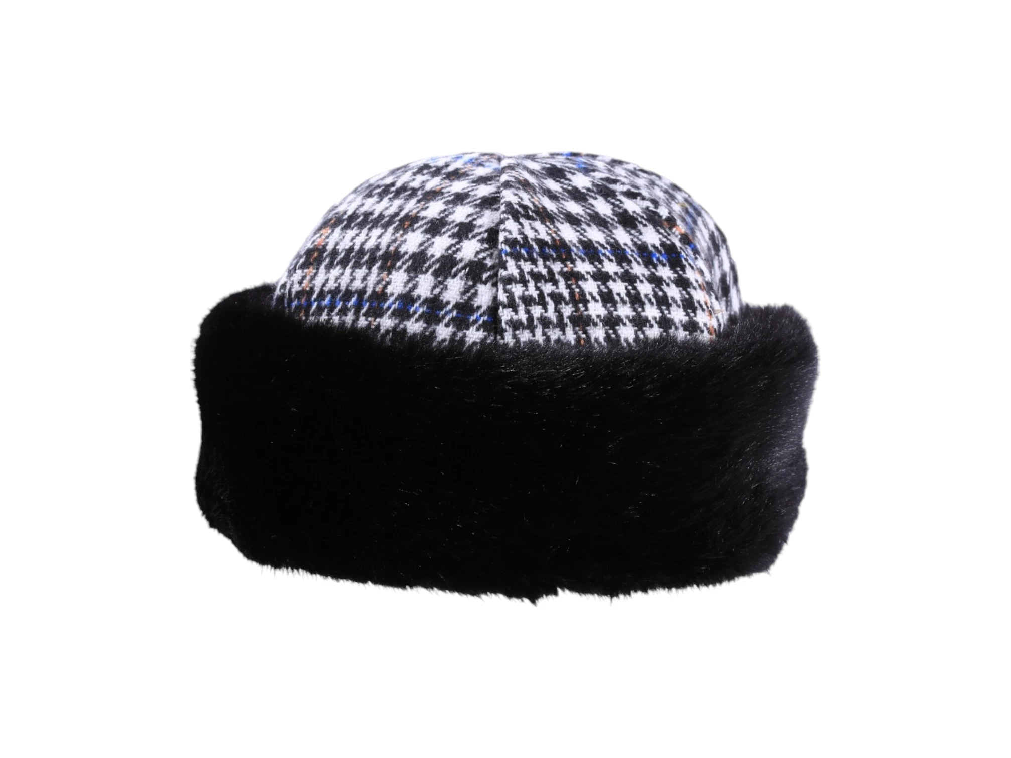 Diese exklusive Toque mit Kunstfell ist die perfekte Mischung aus traditioneller Handwerkskunst und modernem Stil. Der Fischgrätenkopf in Weiß/Schwarz verleiht der Mütze eine raffinierte Struktur, während der breite Kunstfellrand ein luxuriöses Finish bietet und gleichzeitig vor Kälte schützt. Jede Mütze wird individuell von Hand gefertigt, was sie zu einem Unikat macht und den hohen Anspruch an Qualität und Detailverliebtheit unterstreicht.