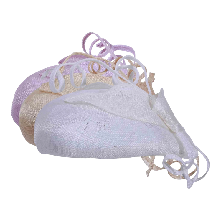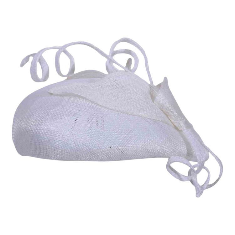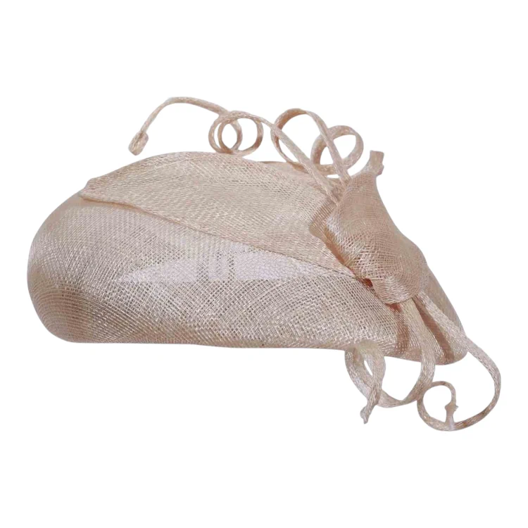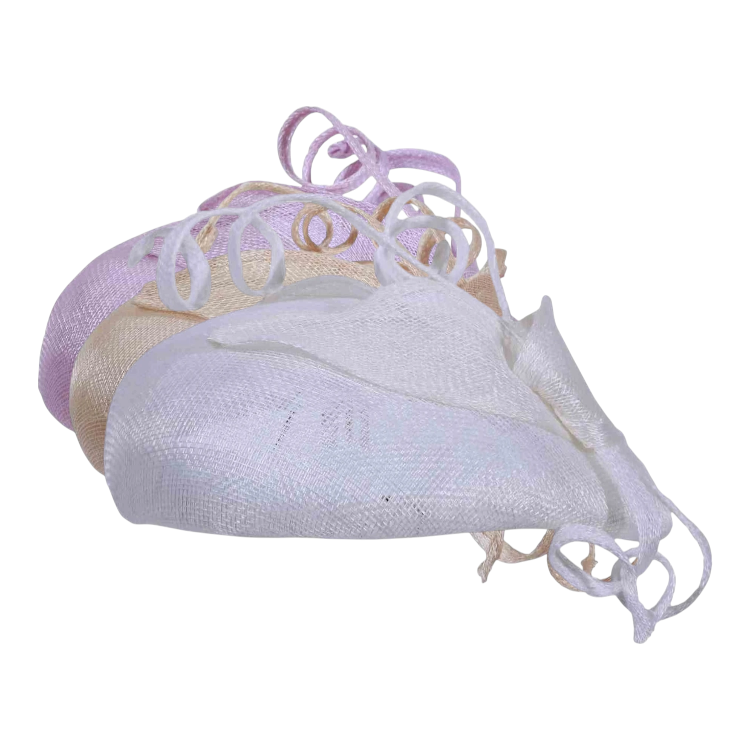 Dieser stilvolle Kopfschmuck beeindruckt durch seine reduzierte, aber wirkungsvolle Form: eine leicht gewölbte Basis, darauf dekorative Elemente wie geschwungene Sisalbänder, die dem Modell eine florale Leichtigkeit verleihen. Ob in klassischem Weiss, zartem Hellbeige oder romantischem Mittelrosa dieser Toque sorgt für Aufsehen ohne aufdringlich zu wirken.