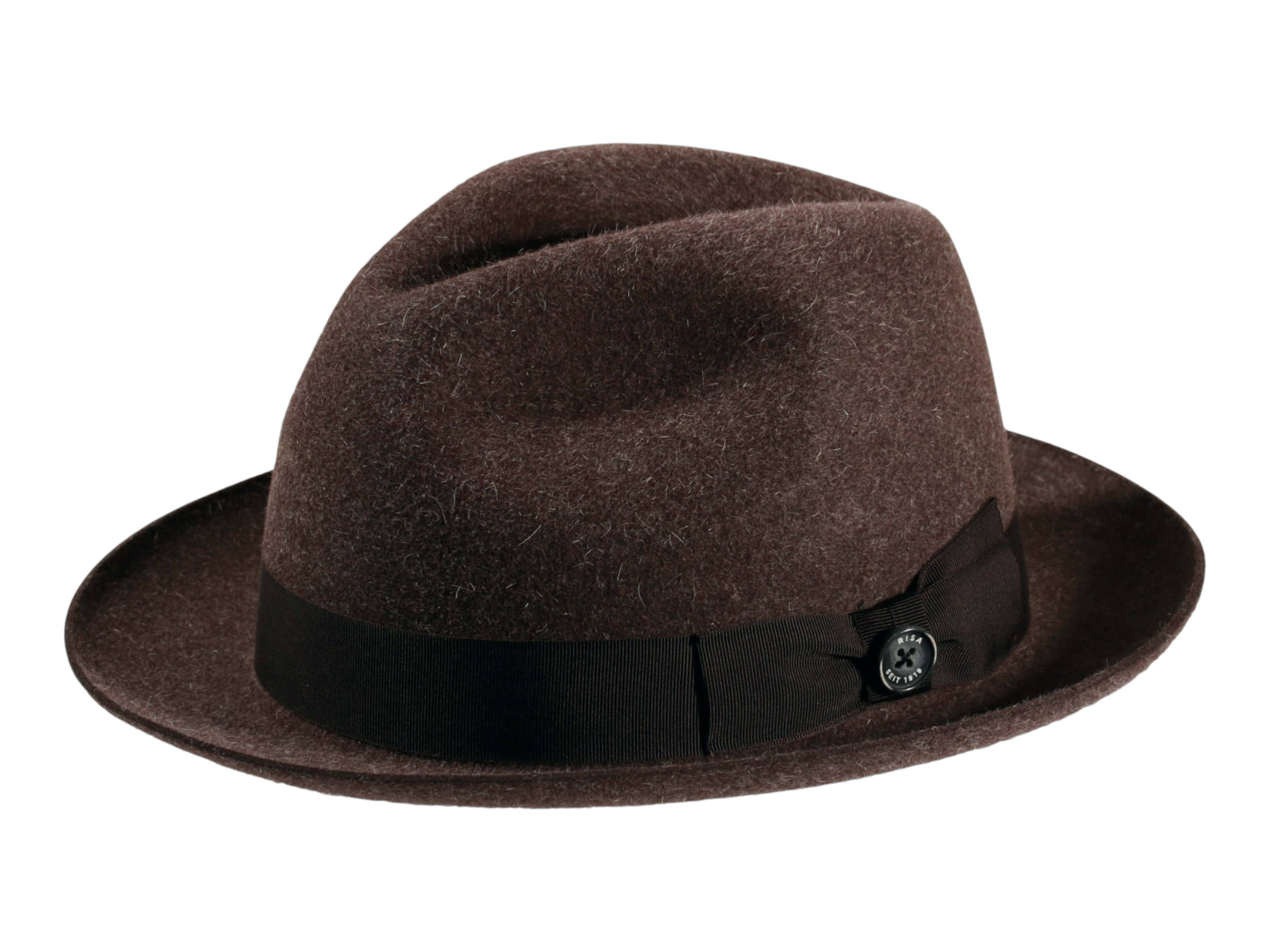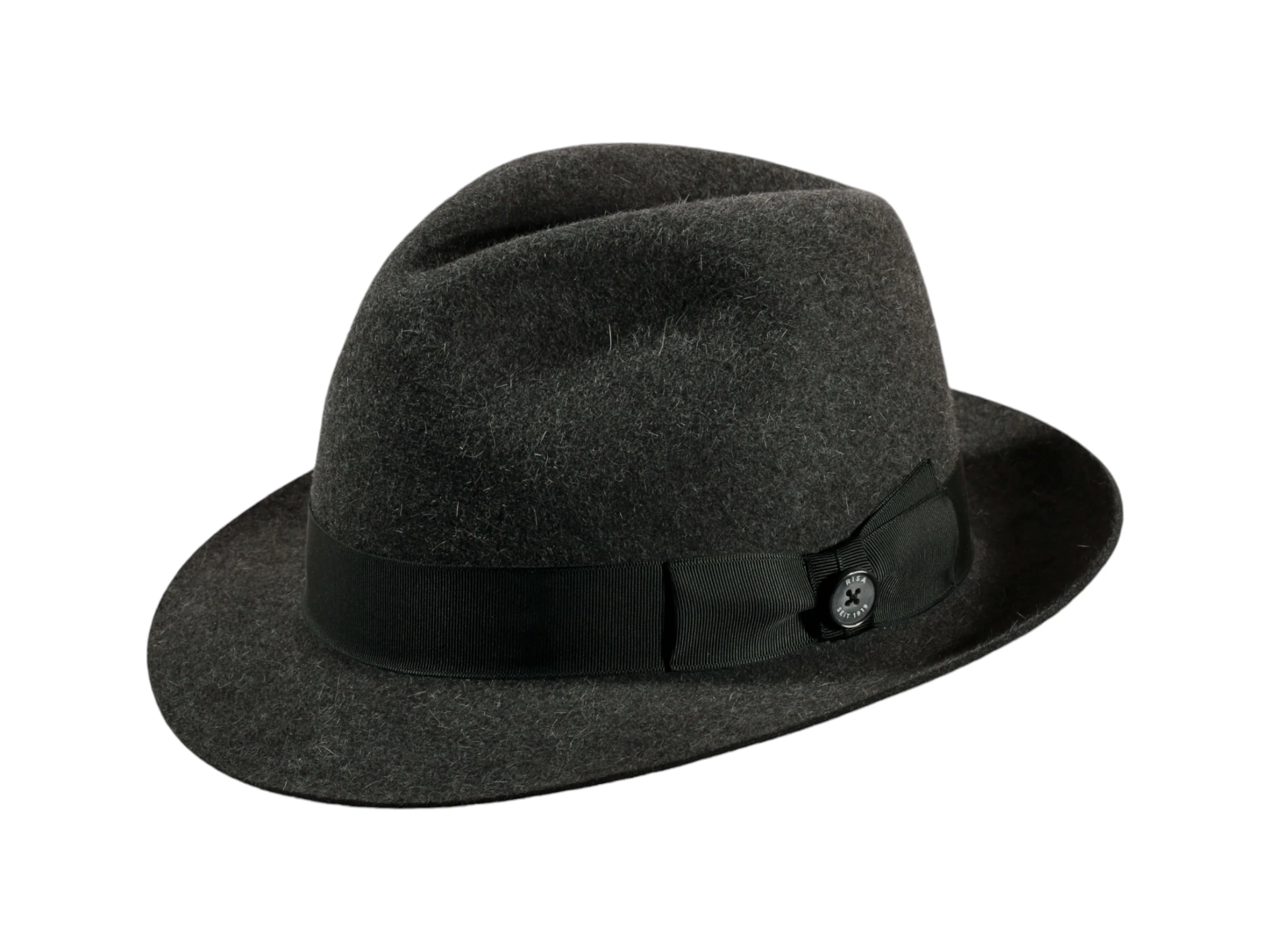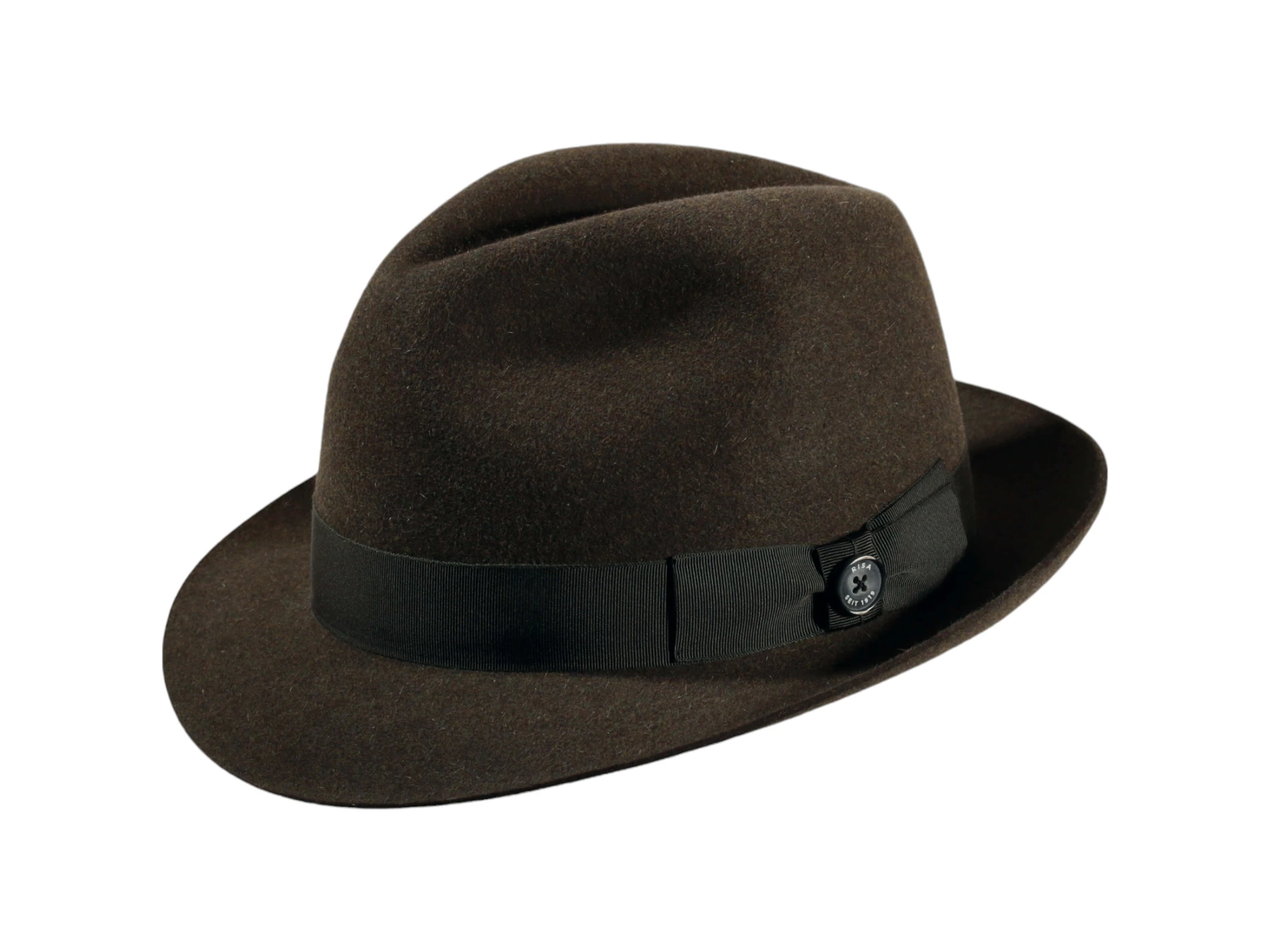Die Garnitur aus Rebsband mit eleganter Masche und dem „1919 Knopf als Qualitätssiegel“ verleiht dem Hut den letzten Schliff und unterstreicht die hohe Handwerkskunst. Jedes Stück wird individuell in der Schweizer Hutmanufaktur Risa handgefertigt, was Ihnen ein exklusives Unikat garantiert.