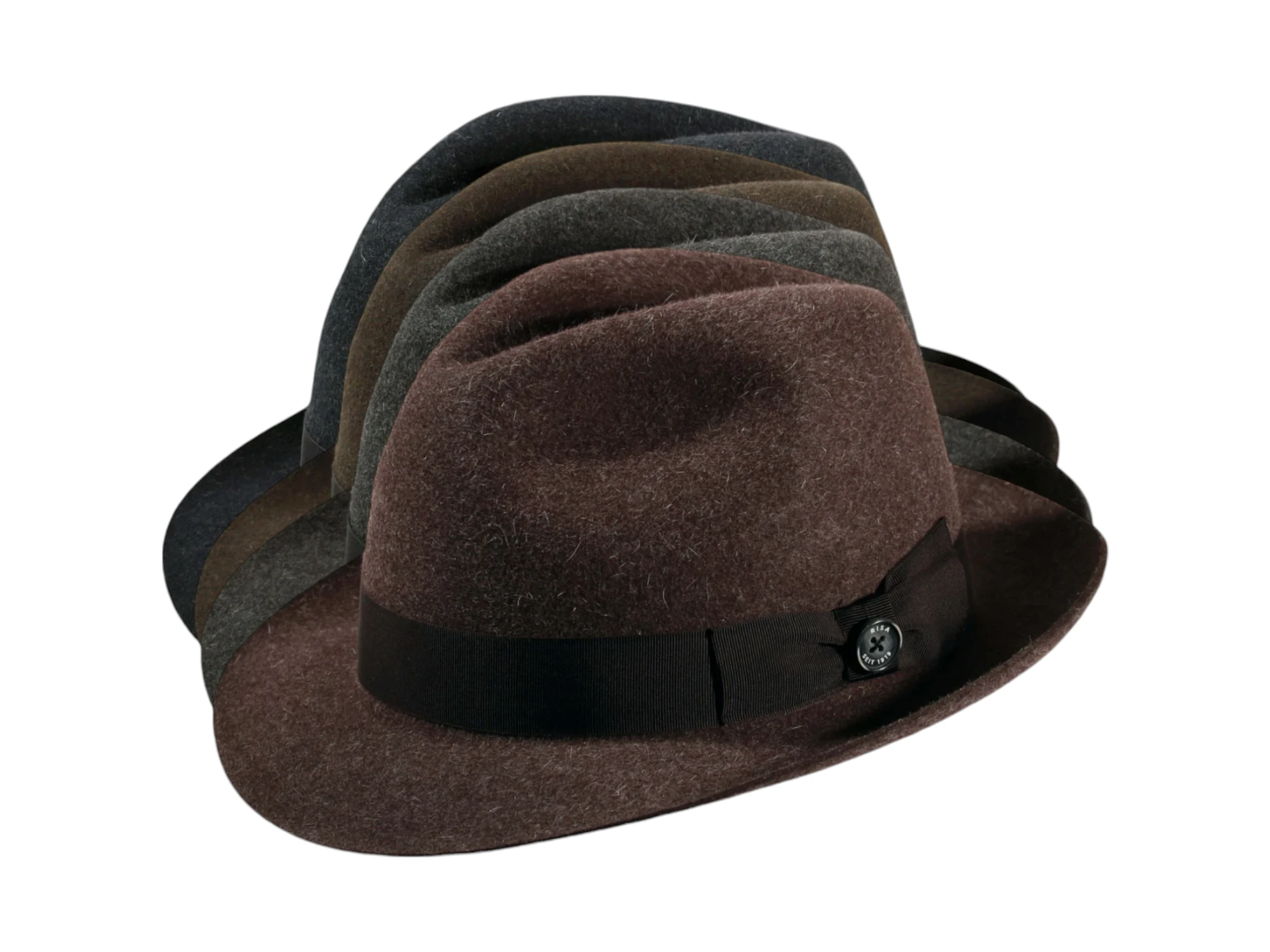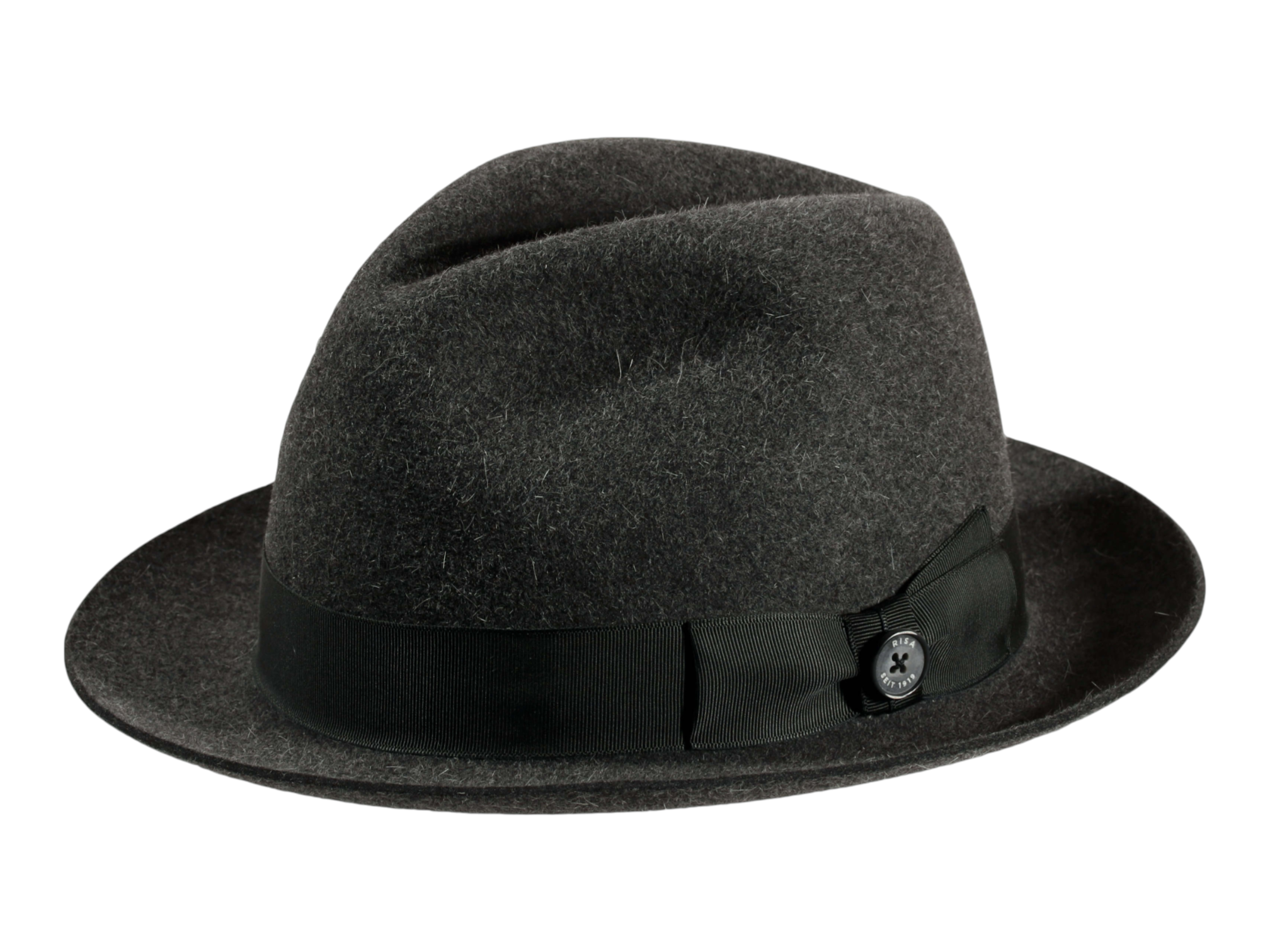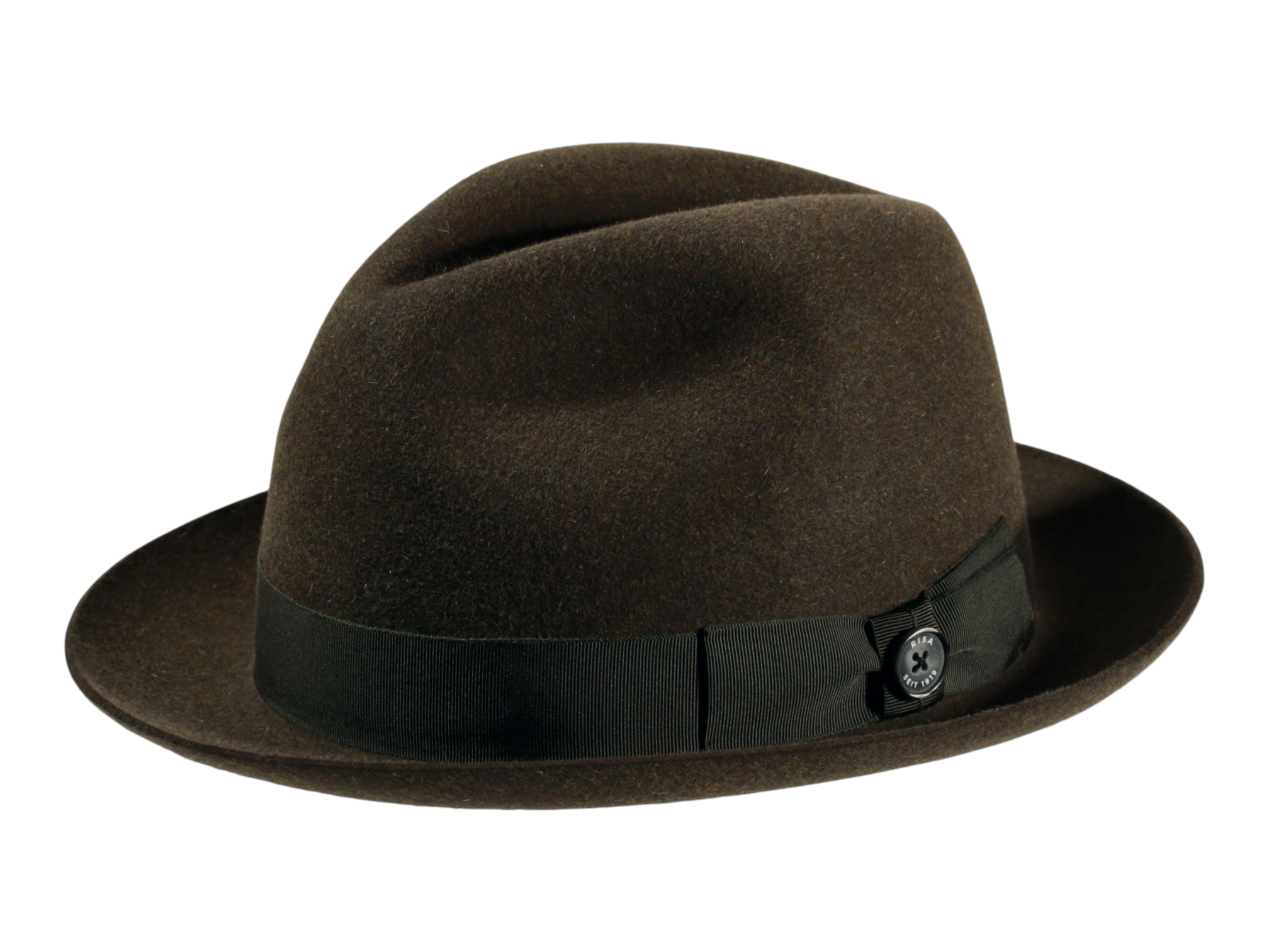 Die Garnitur aus Rebsband mit eleganter Masche und dem „1919 Knopf als Qualitätssiegel“ verleiht dem Hut den letzten Schliff und unterstreicht die hohe Handwerkskunst. Jedes Stück wird individuell in der Schweizer Hutmanufaktur Risa handgefertigt, was Ihnen ein exklusives Unikat garantiert.